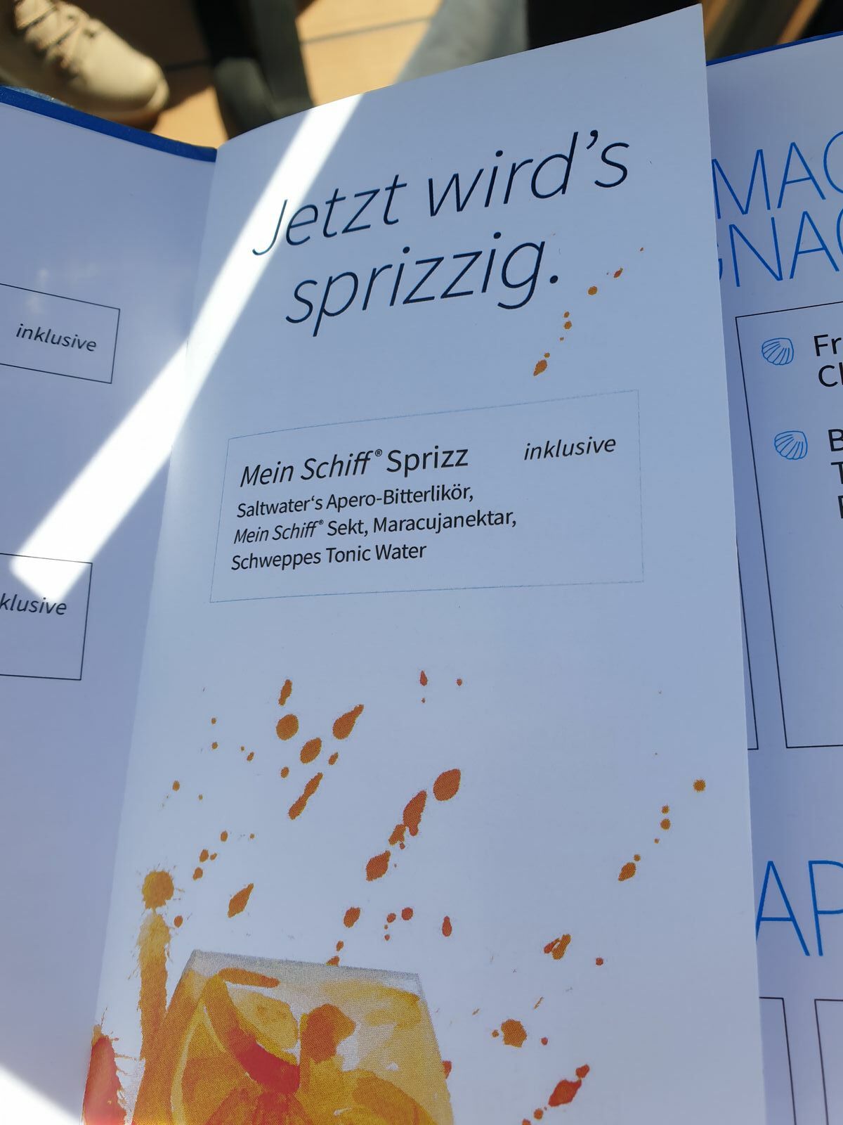es gibt auf der Mein Schiff einen Einleger in der Barkarte "Jetzt wird's sprizzig".