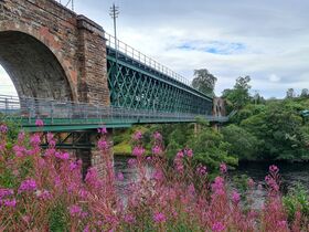 In Aviemore angekommen, hatten wir nur etwa 10 Minuten Wartezeit, bis der historische Zug einfuhr. Für Bahnfans sicherlich toll; die Lok muss in Aviemore umgesetzt werden, insofern gibt’s viel Dampf und Krach direkt am Bahnsteig. Die Fahrt selbst ist dann eher unspektakulär; im Wesentlichen mitten durch die wilde Natur Schottlands geht es in knapp 45 Minuten nach Broomhill; dort endet der befahrbare Teil der Strecke, die Lok setzt um und der Zug fährt zurück. Für uns war hier Endstation; unser Bus wartete bereits und fuhr uns weiter nach Grantown-on-Spey (etwa 30 Minuten Fahrt). An sich ein ganz nettes Dörfchen. Was TUI sich aber dabei gedacht hat, 1:45h „Freizeit“ dort einzuplanen, erschloss sich uns nicht. In der Ausflugsbeschreibung stand was von etwa einer Stunde, was ebenfalls mehr als ausreichend gewesen wäre. Wir haben die Zeit genutzt, um durch den Wald zum Flüsschen Spey zu laufen. Bei tollem Hochsommerwetter war das schön und für Schottland sehr unerwartet. Die Wege sind nicht wirklich gut ausgeschildert – Apps wie Komoot sind in dem Fall sehr hilfreich.