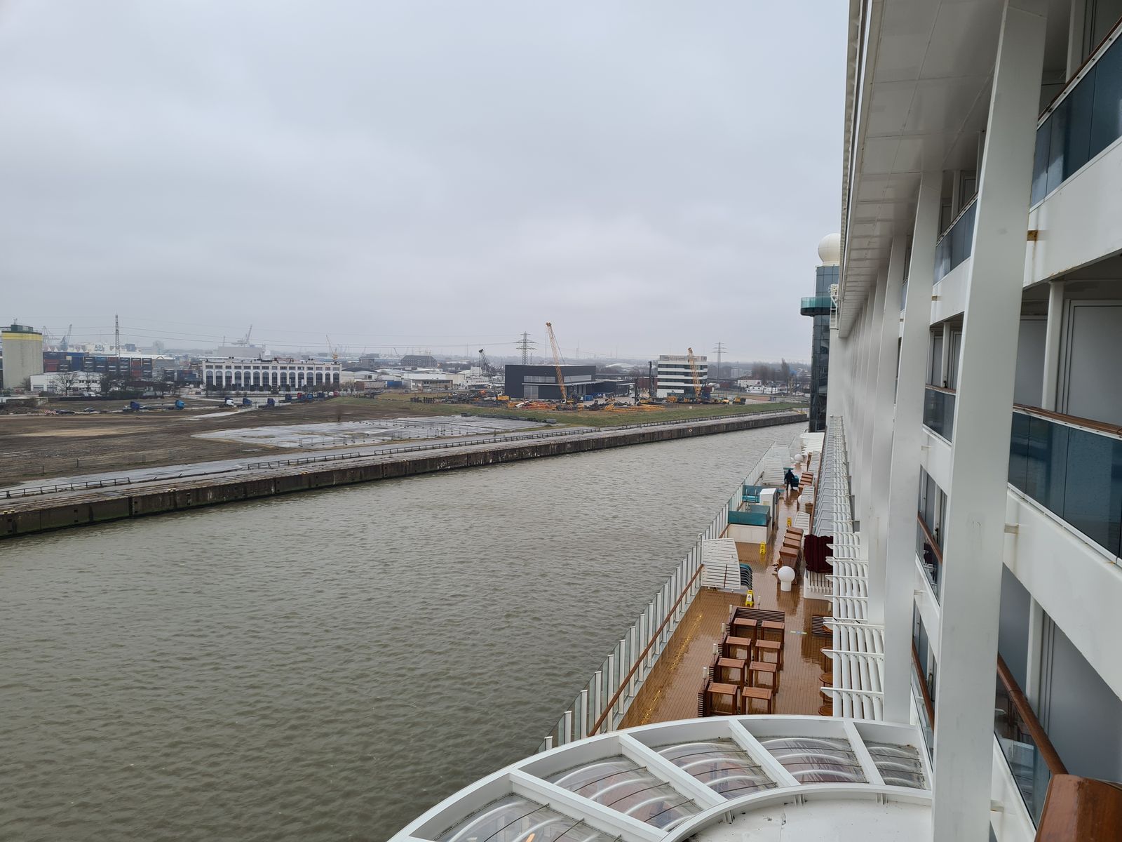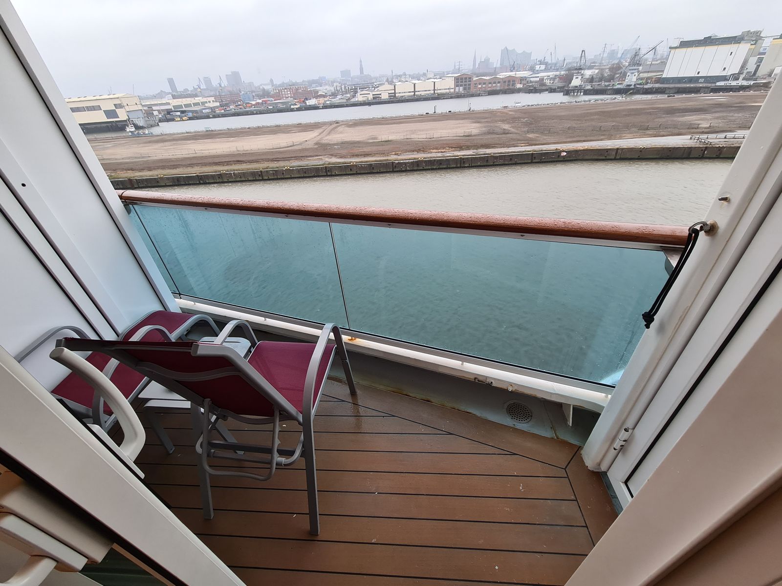 Vorteil ist die mittige Lage. So ist man schnell bei den Aufzügen und es kann niemand in den Balkon reinschauen, da kein Laufweg daran vorbei führt. Den Seegang merkt man hier nicht so dolle wie z.B. vorne. Außerdem empfand ich den Balkon als gut windgeschützt.
