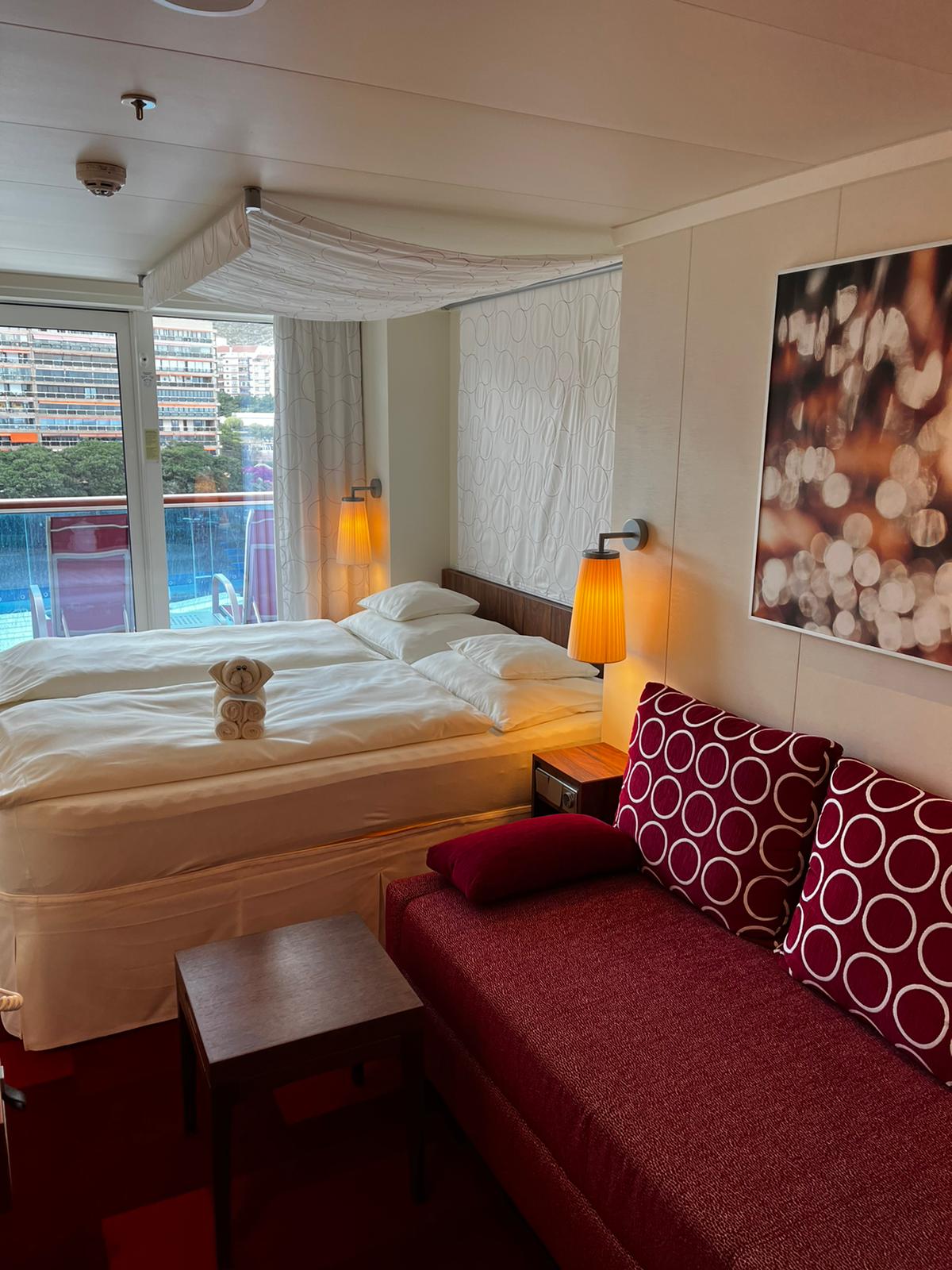 Wir haben über Vario diese Balkon-Kabine erhalten, waren sehr zufrieden. Liegt ziemlich vorne, Backbord. Keine störende Geräusche, alles top. Musterstation B. Wir würden die Kabine auch in Premium buchen. Da wir mehr oder weniger „Ententeich“ hatten kann ich nix über schwanken und wackeln erzählen