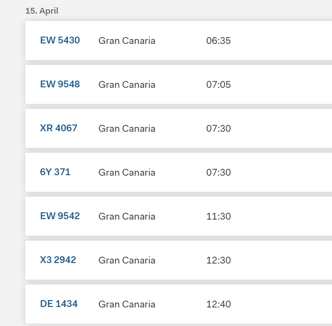 Der EW5430 ist in jedem Fall ein Charter, ist bei Eurowings immer an der Flugnummer mit 5 beginnend zu erkennen. 6Y ist SmartLynx, chartert AIDA in letzter Zeit auch sehr gerne. Und auch der TUIfly X32942 ist eine Charterflugnummer, die "normale" Maschine nach LPA ist X32114.