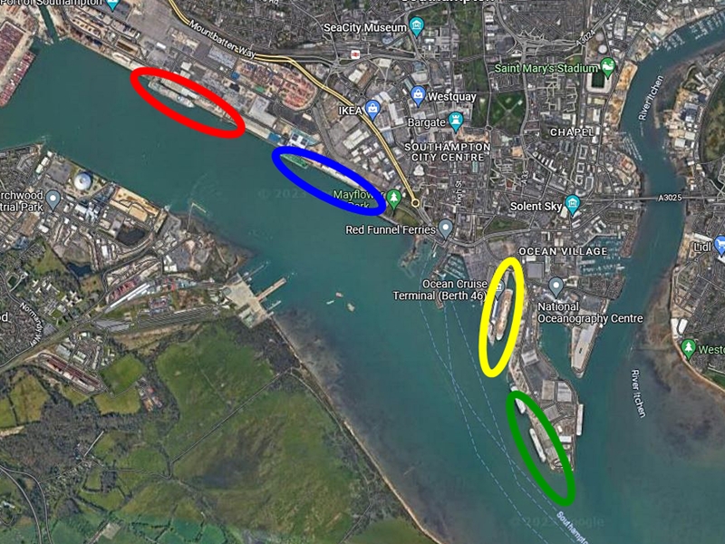Ich habe mal die "Park"situation für den 23.04.23, unserem Stopp in Southampton, herausgesucht.