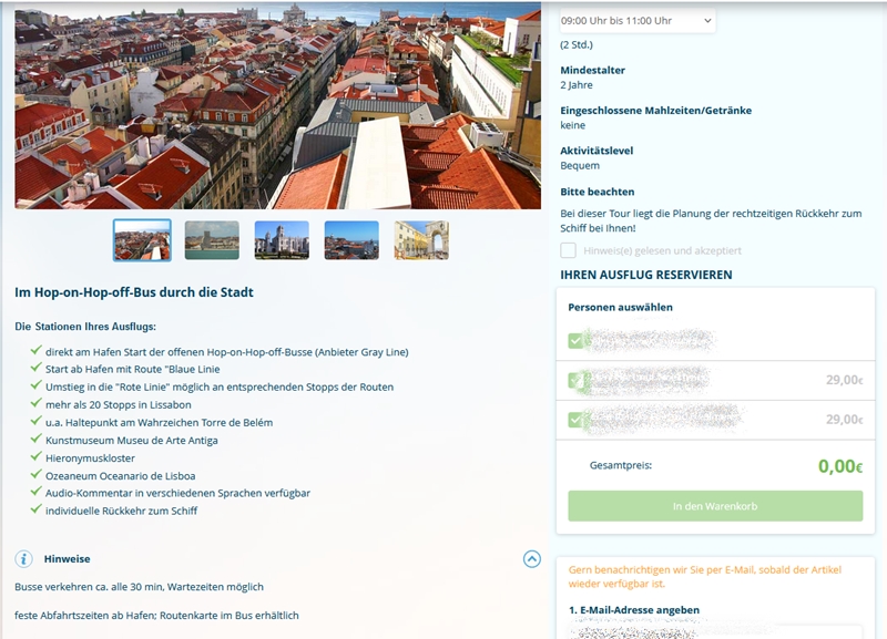 Wir haben für Lissabon auch den HopOn HopOff-Bus gebucht. Allerdings über myAIDA. Ist fast kein Preisunterschied. Es werden aber alle drei verfügbaren Linien (grau, blau und rot) damit bedient.