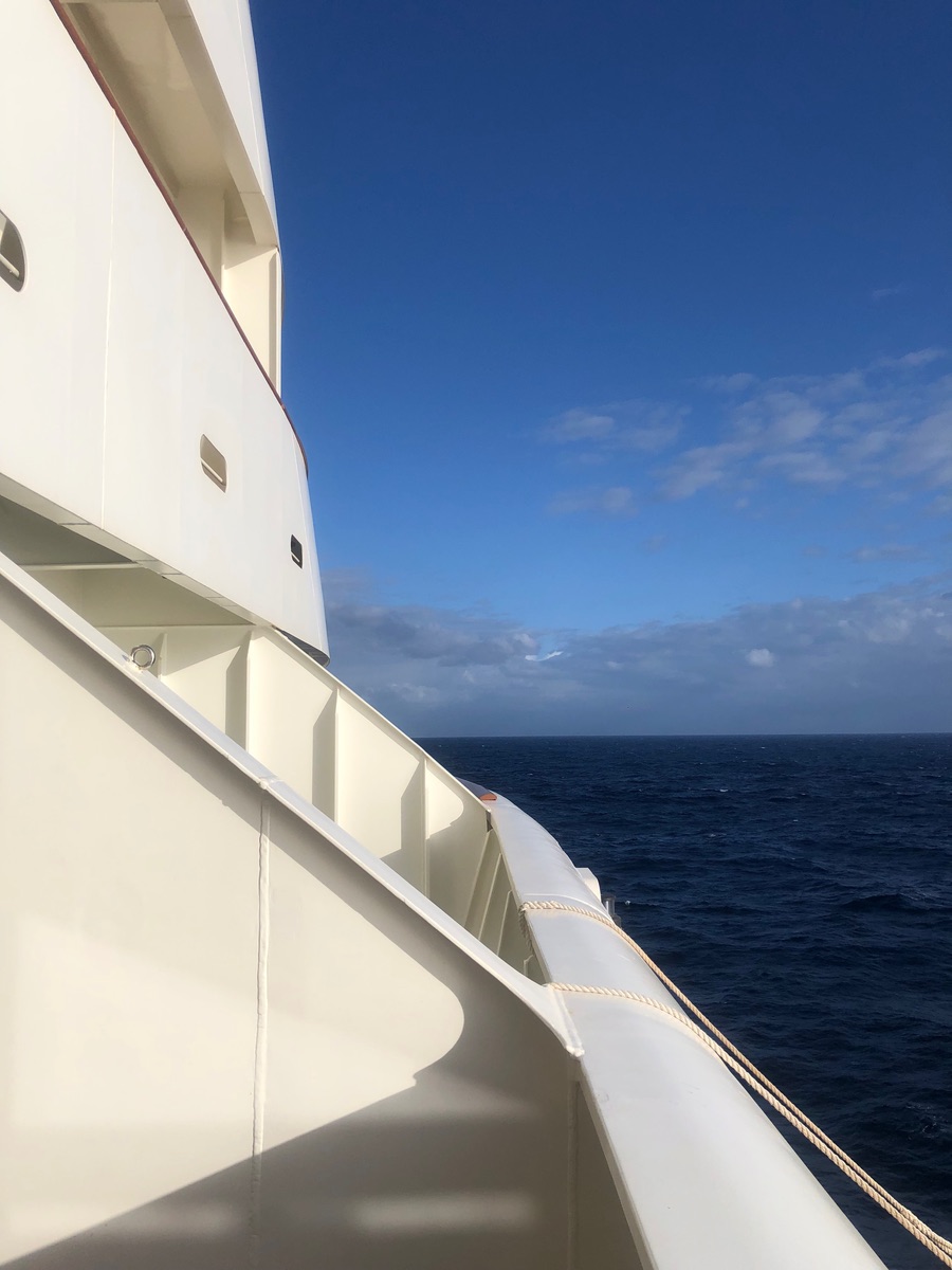 Zugegeben. Zunächst war ich wenig begeistert. Stahlbalkon seitlich vorne im Bug - typische Zuteilung bei Einzelbelegung.