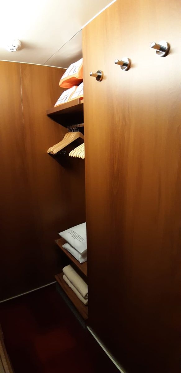 Die Kabine hat einen begehbaren Kleiderschrank.