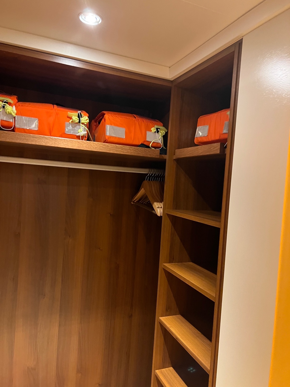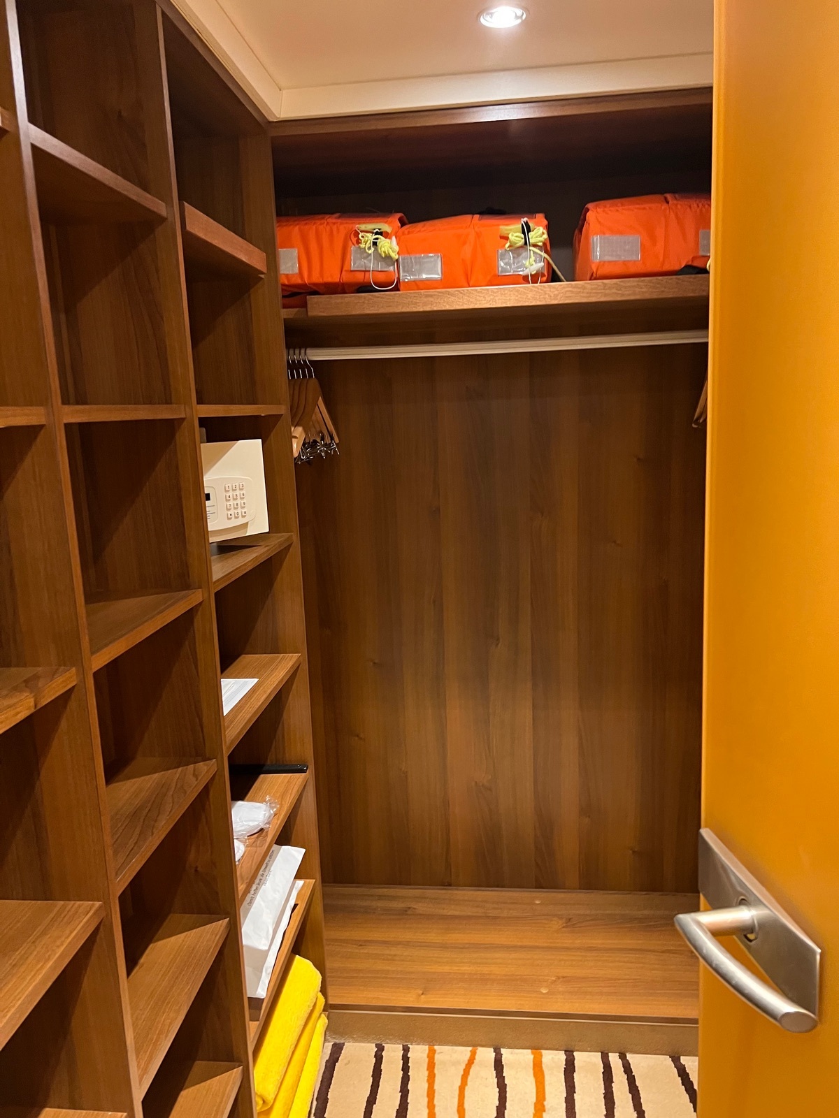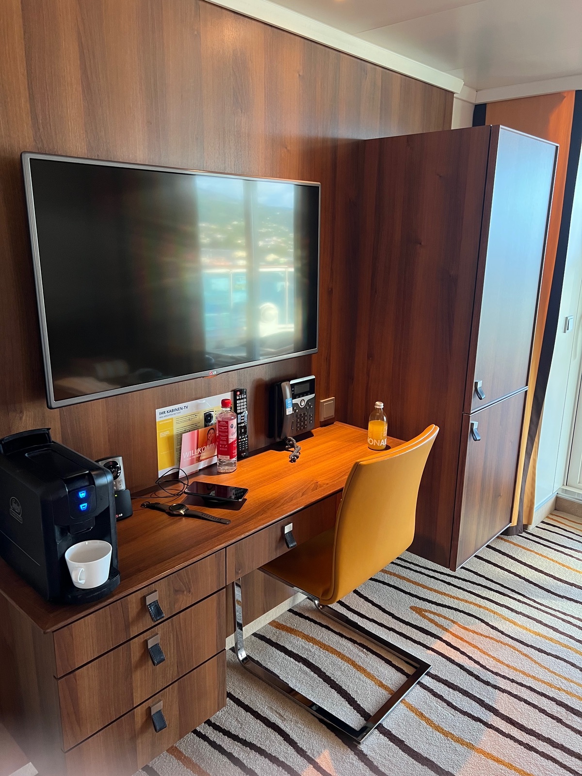 Kleiderschrank war erst bedenklich, aber der Raum ist recht Gross und praktisch. Die Glas Türe ist recht Schwer so das man die Türe in keinen Halterung klemmen kann.