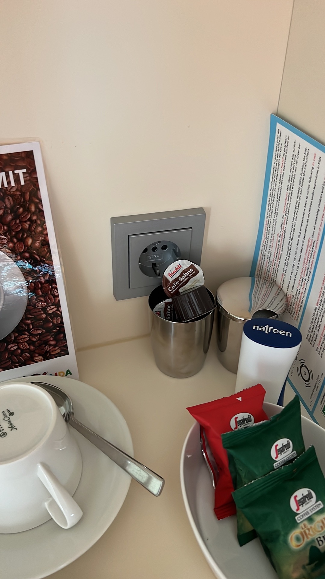 USB Anschluss und 2 Steckdosen, im Schrank über der Minibar ebenfalls eine Steckdose ( danke an novoman11 , ist uns nie aufgefallen) und am Fenster neben den Sofa Tisch