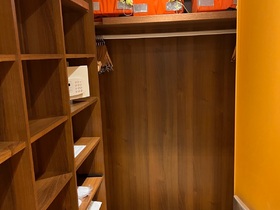 Kleiderschrank war erst bedenklich, aber der Raum ist recht Gross und praktisch. Die Glas Türe ist recht Schwer so das man die Türe in keinen Halterung klemmen kann.