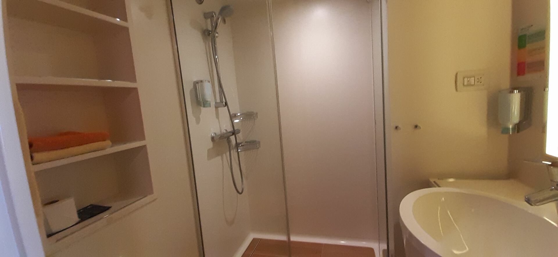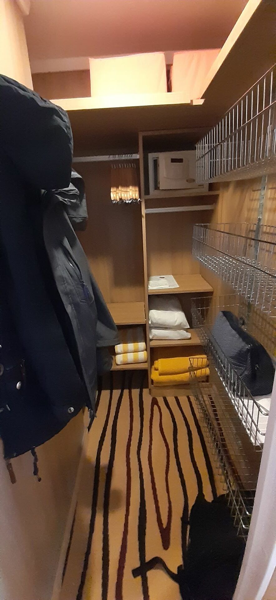 Schöne, ruhige Veranda-Komfortkabine mit begehbarem Kleiderschrank. Dicht am vorderen Treppenhaus, am Beachclub und Pooldeck. Wir haben die Kabine in Premium gebucht und uns auf die Angaben zu benachbarten Kabinen verlassen, dass man in der Kabine nichts vom Beachclub hört. War zutreffend, man hört nichts. Die Entfernung zu den Restaurants ist beträchtlich, schadet aber bei dem guten Essen nicht. Das viele Treppensteigen wurde im Lauf der Woche viel flotter, zur Not gibt's den Fahrstuhl. Das Mobiliar der Kabine ist in Ordnung, nur die Armlehenkissen der Couch sind etwas abgenutzt. Bei Bezug der Kabine war der Türöffner der Balkontür schwergängig und machte einen Höllenlärm. Da wir sowieso zur Rezeption mussten, haben wir dies dort angesprochen. Kaum waren wir auf direktem Weg wieder auf der Kabine, kam 5 Minuten später ein Handwerker und danach war die Tür leicht