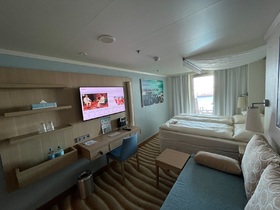 Die Kabine 17003 ist eine 2-3 Personenkabine auf dem oberste Deck, direkt über die Brücke, mit eine Fläche von etwa 17,5qm und einen Balkon/Veranda von etwa 5,5qm.