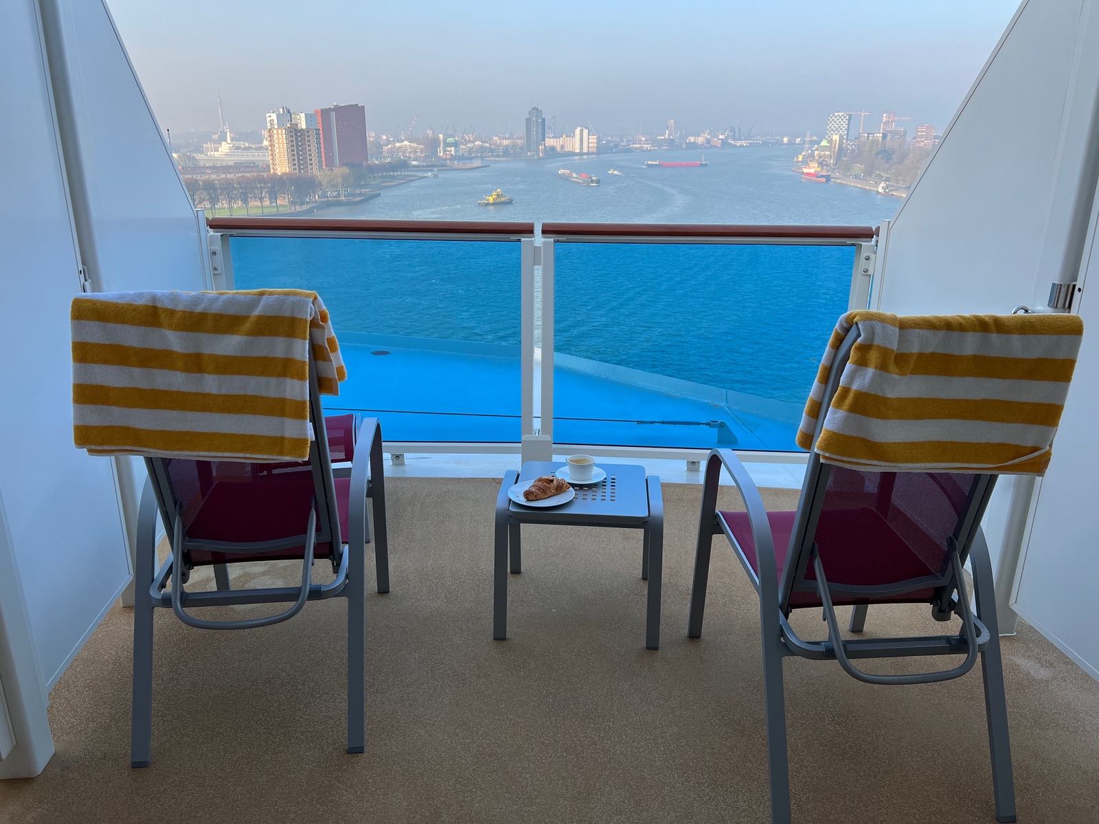 Erwähnenswert, ist dass der Weg zum Beachclub/AIDABar (dort gibt es auch den Frühaufsteher Kaffee) nicht weit ist. Und mit der Fahrstuhl ist auch Brot&Stulle auf Deck 7 nicht weit, wenn es zum morgendlichen Auslaufen um 7 Uhr schon ein Croissant benötigt wird 😉