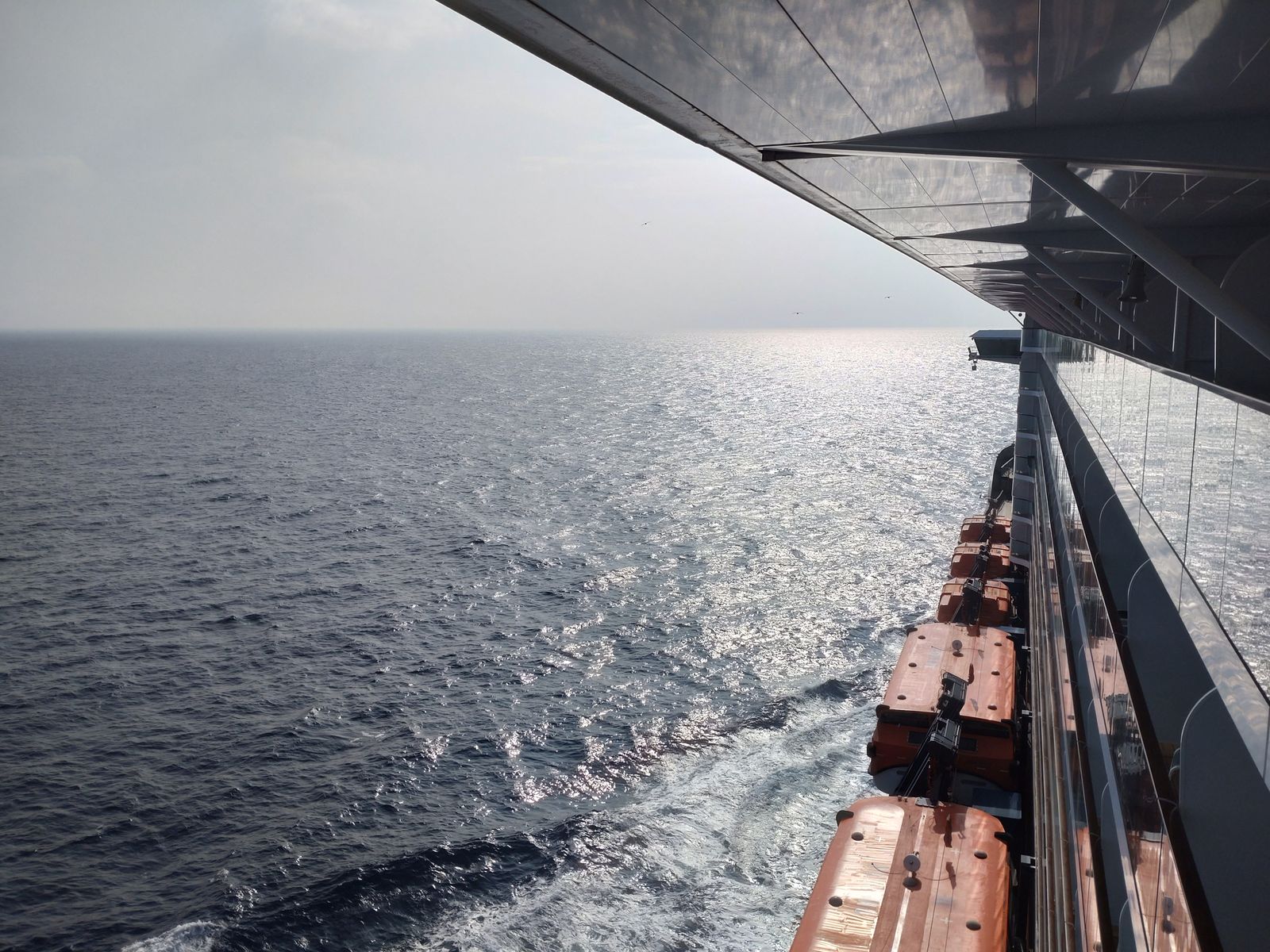 Wir sind schon seit 08:00 Ortszeit auf dem Schiff. Es ist sehr leer, man merkt, dass viele Passagiere noch nicht da sind.