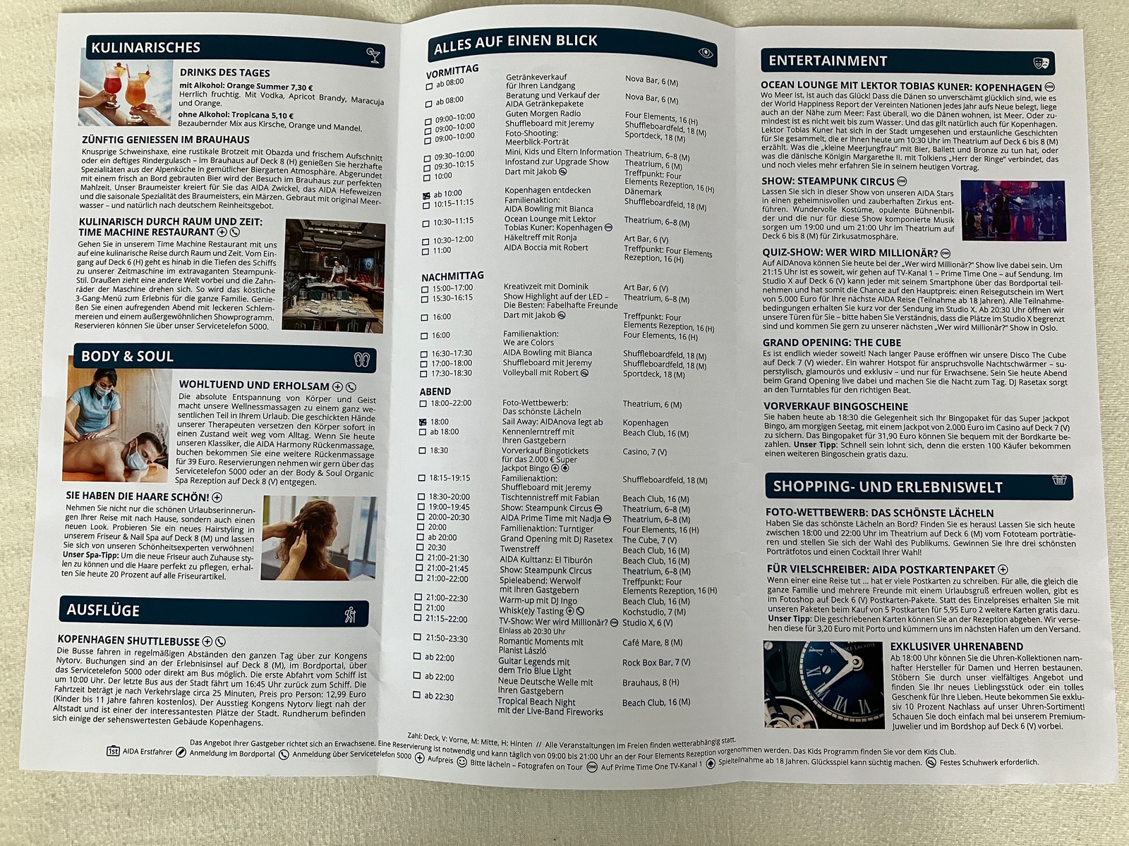 Preislich ist es übrigens kein Unterschied zwischen AIDA und dem Anbieter direkt. Werde mich daher spontan entscheiden.