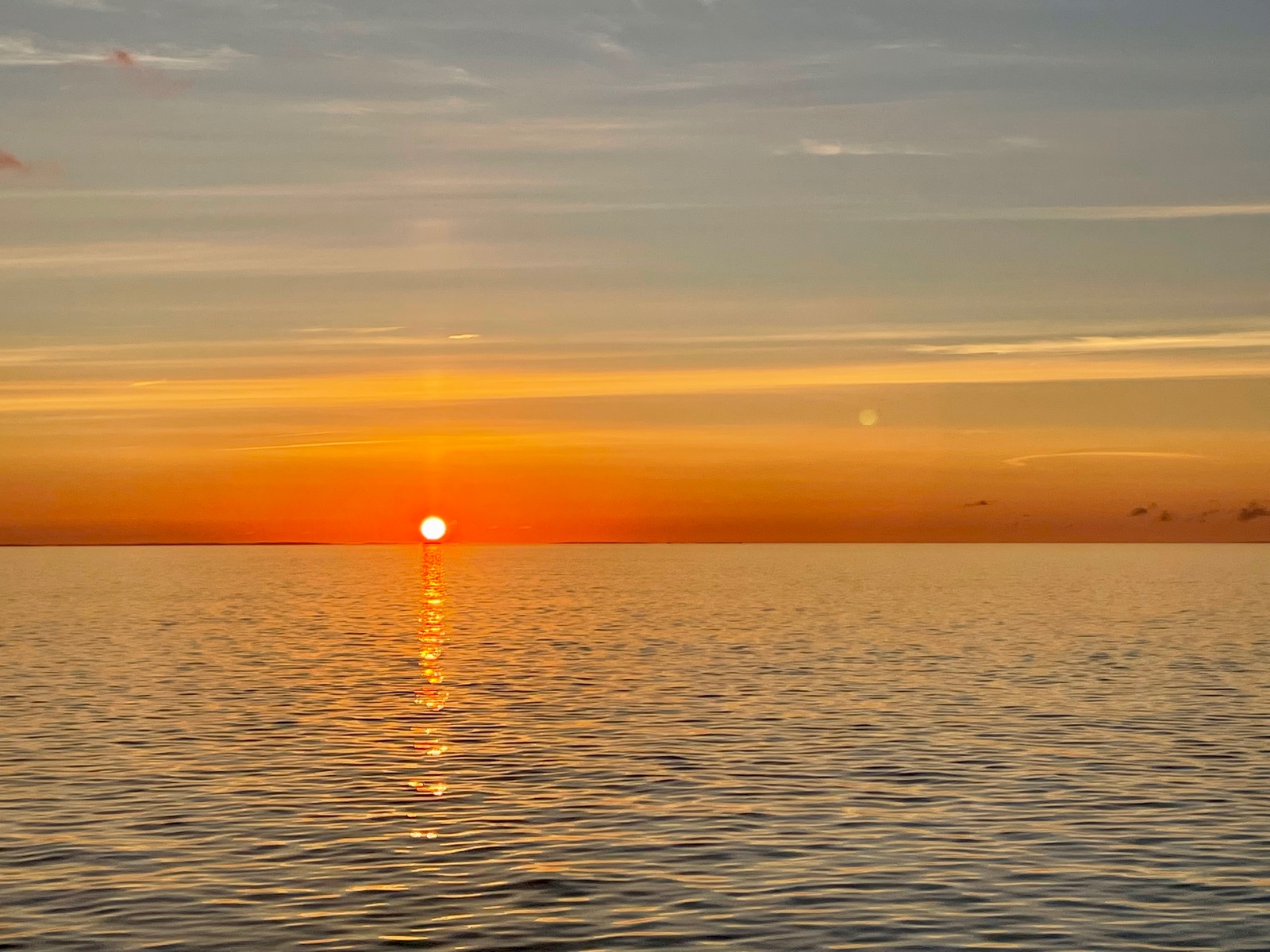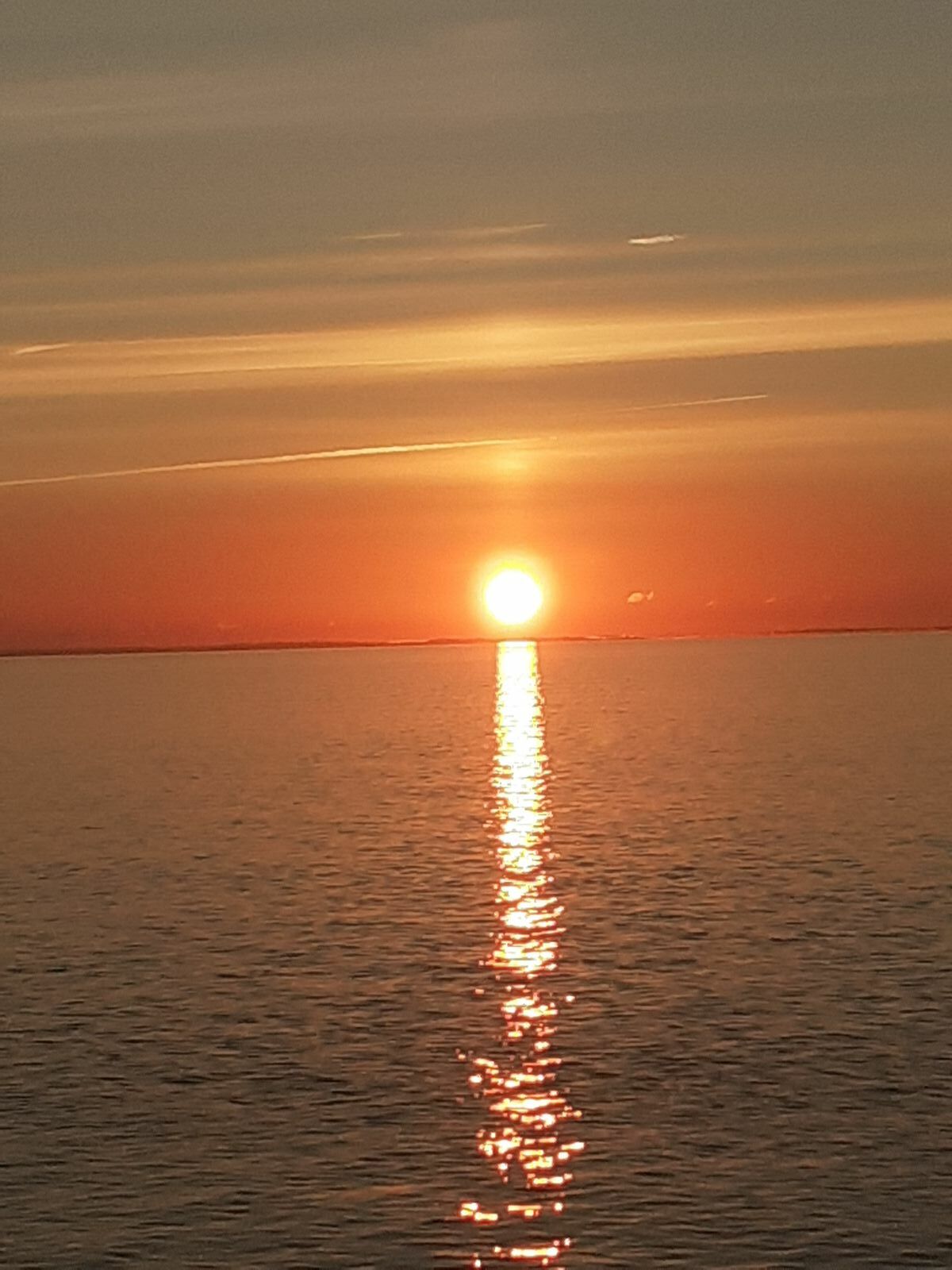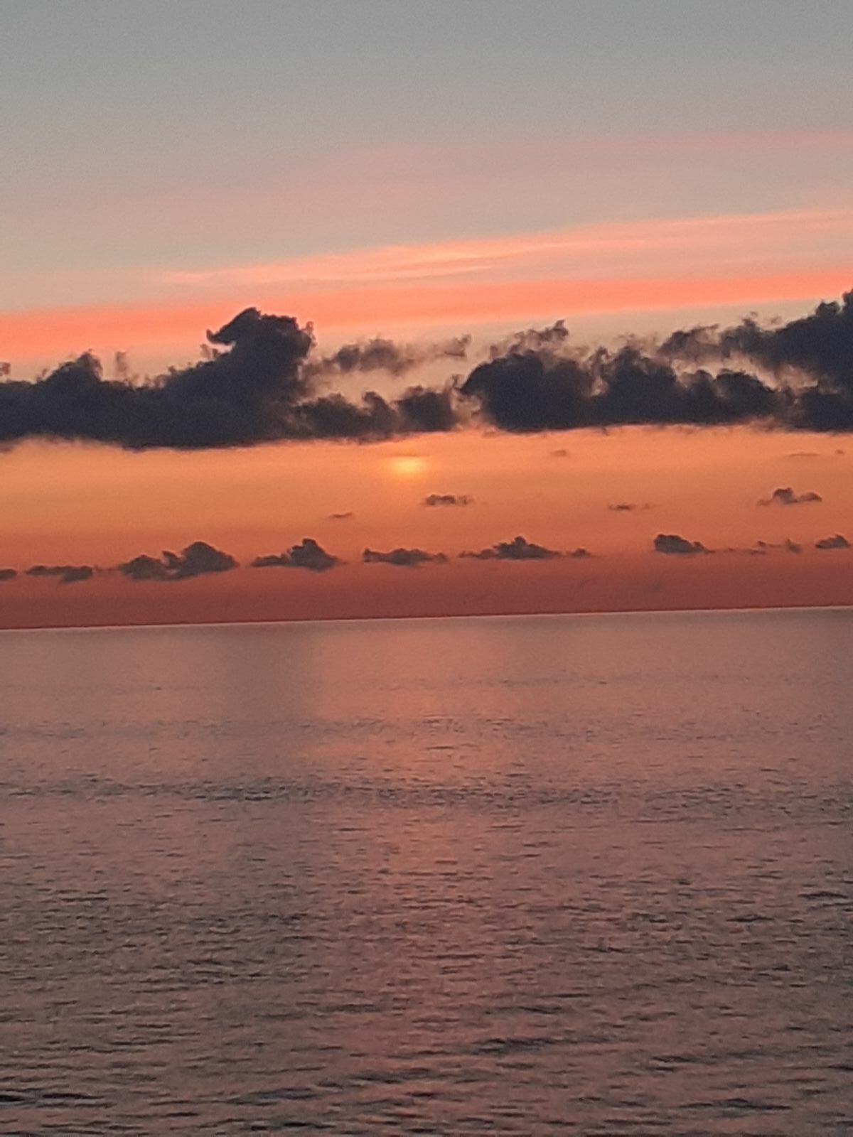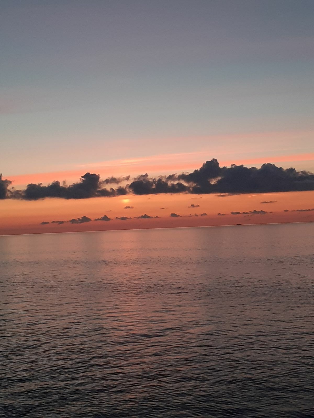Heute wurden wir - also die "Steuerbordler mit Aussicht“ oder die "Frühweckersteller“ mit einem wundervollen Sonnenaufgang belohnt!