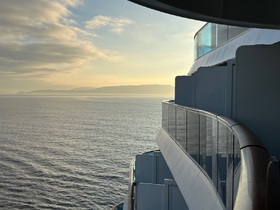 Am Balkon hängt der Balkon der Suite wie ein Vordach über. Das ist hat Vor-und Nachteile.