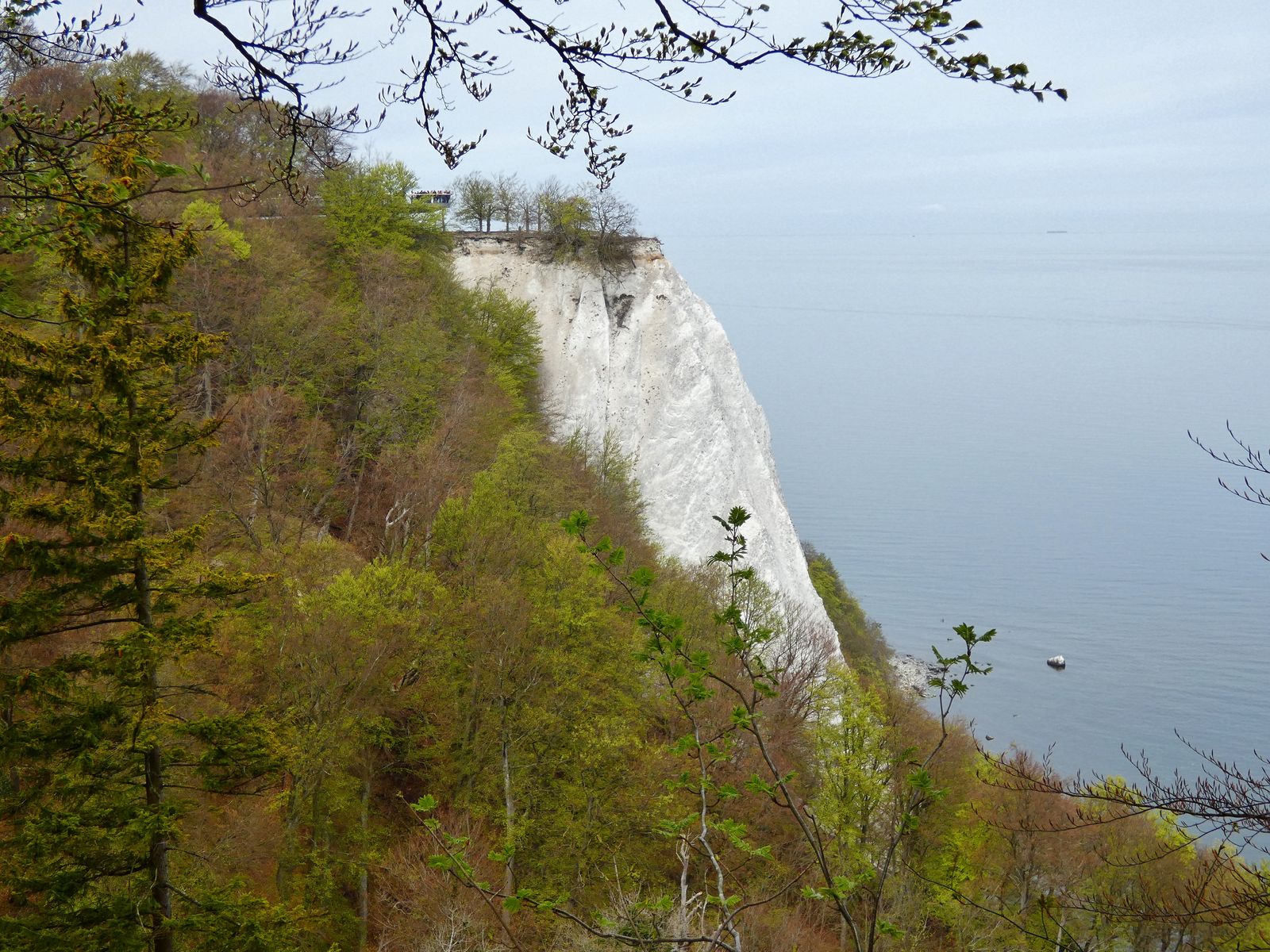 Wir wanderten dann noch bis hin, eine Begehung war zu dem Zeitpunkt leider nicht möglich, da er noch saniert wurde. Jedoch hatten wir von seinem Fuß einen tollen Blick, die Luft war klar, so dass wir die Kreideküste der rund 70 Kilometer entfernten, zu Dänemark gehörenden Insel Mön sehen konnten. Zurück nach Kloster ging es bergab und damit wesentlich leichter.