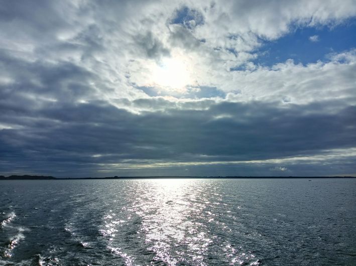 Ich stand und saß die ganze Zeit an Deck und genoss bei einem heißen Getränk den herrlichen Herbstabend und die friedliche Stimmung – wohl wissend, dass sich das Wetter rund 24 Stunden keineswegs mehr so lammfromm präsentieren würde. Eine Sturmflut würde unter anderem die Ostküste Rügens die kommenden drei Tage in Atem halten und Hiddensee würde während dieser Zeit nicht erreichbar sein.