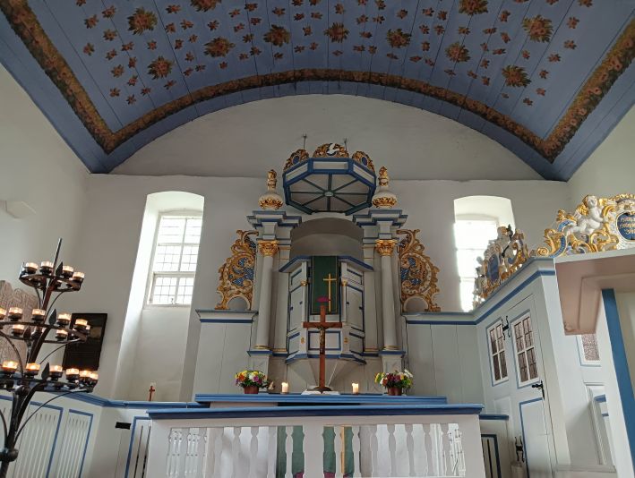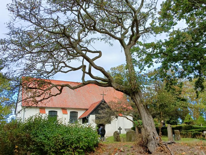 Der kleinen Kirche von Kloster mit ihrer Decke aus lauter gemalten Rosen auf blassblauem Untergrund statteten wir einen Besuch ab. Das Grab von Gerhart Hauptmann, welches sich auf dem kleinen Friedhof von Kloster befindet, besuchten wir natürlich auch.