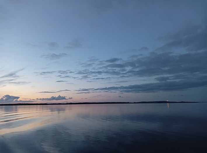 Immer wieder schickte der Leuchtturm Dornbusch leuchtende Grüße über den still daliegenden Bodden: