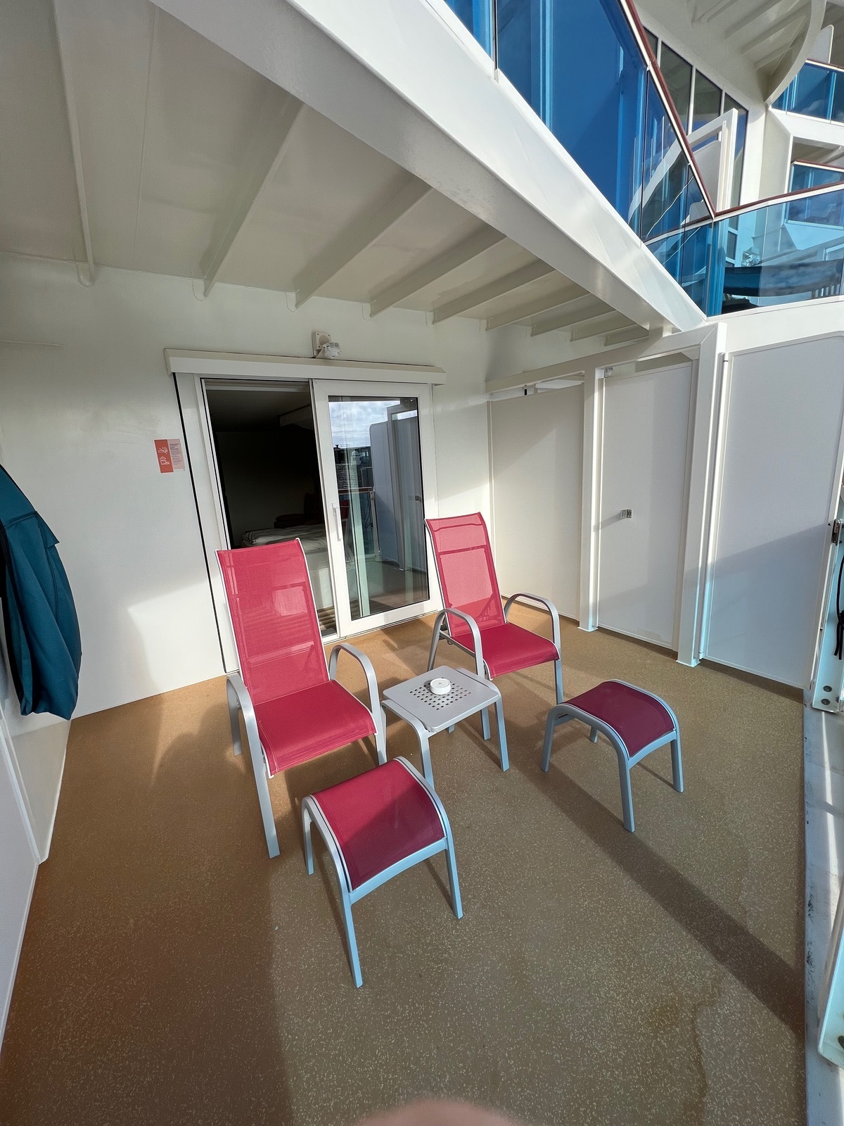 Für die Transreise von den Kanaren zurück nach Deutschland ist die Kabine perfekt, wenn man die Sonne mag. Wir hatten fast den ganzen Tag die Sonne auf der Veranda. Ich glaube, ich habe noch nie die Veranda so sehr genoßen wie auf dieser Reise.