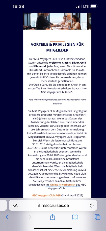 Wir sind bei Aida auch Ocean und haben nun bei MSC Clubstufe Silber.