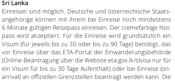 Als häufig nach Sri Lanka Reisende hab ich eben mal die aktuellen Seiten, wo man das Visum als Dt. Staatsbürger beantragt , gecheckt: