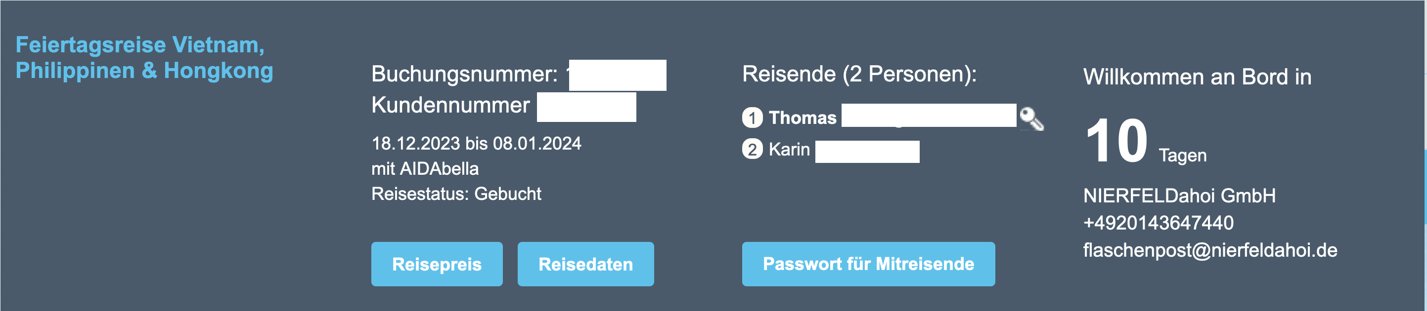 - RE: AIDAbella: Feiertagsreise Vietnam, Philippinen & Hongkong | 21 Nächte | 18.12.2023 bis 08.01.2024 (Montag, 18. Dezember 2023, 00:00-Montag, 8. Januar 2024, 00:00)