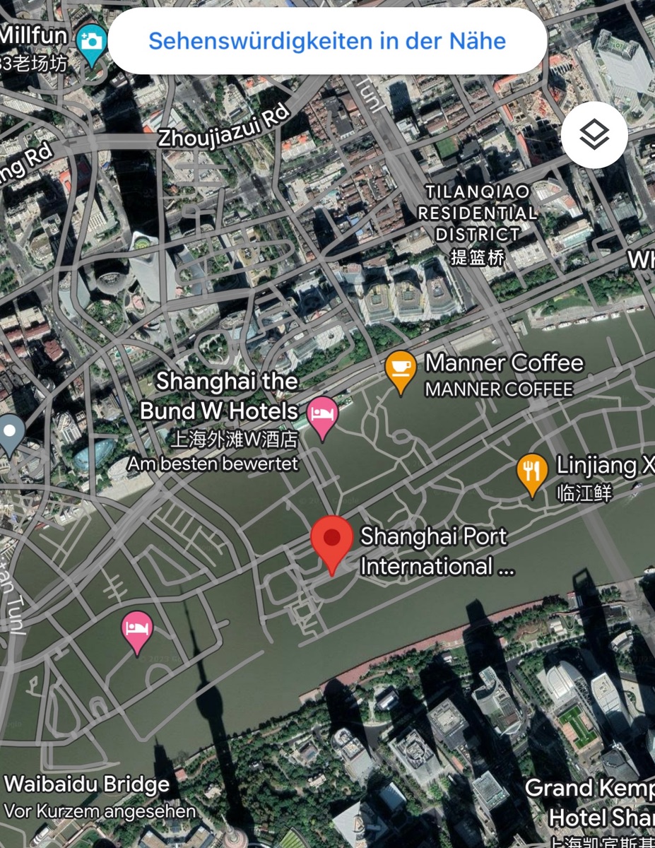 Wir liegen am Shanghai International Cruise Terminal, das müsste das am Bund sein, oder?