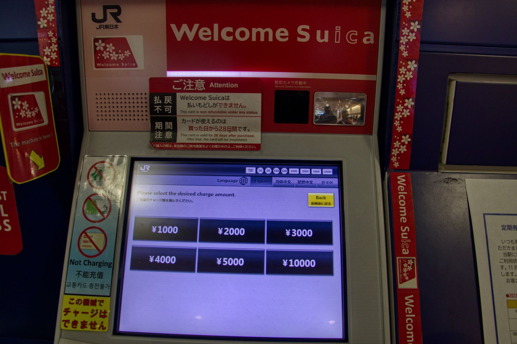 die SUICA-Bezahlkarte am Automaten gezogen und gleichzeitig mit Yen