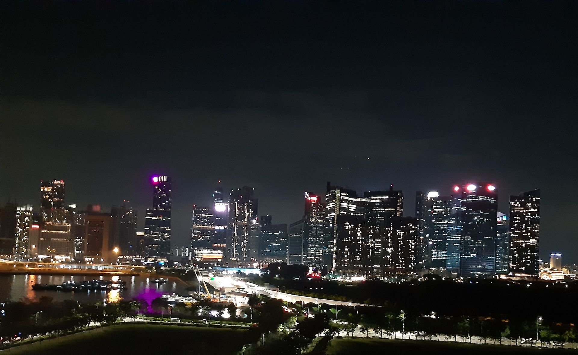 Blick vom Schiff. Gute Nacht Singapur.