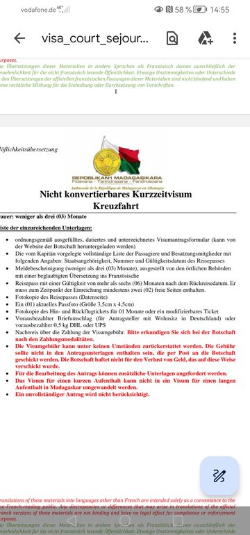 Auf meiner Buchungsbestätigung von AIDA steht für Madagaskar folgendes:
