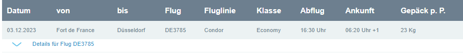 Es ist zwar noch etwas hin, aber nach dem gestern unser Rückflug in MyAIDA eingespielt war (Abflug Fort de France 19 Uhr, Ankunft 8:50 Uhr in Düsseldorf mit DE3785, hatte mir einen Screenshot gemacht) ist heute direkt eine andere Flugzeit für den Rückflug in MyAIDA sichtbar: Abflug Fort de France 16:30 Uhr, Ankunft Düsseldorf 06:20 Uhr, Flugnummer ist DE3785 geblieben). Ist es bei euch direkt wieder geändert worden? Wir wollten den Zug für den Rückweg mit planen, aber wenn wir doch schon etwas über zwei Stunden früher dann in Düsseldorf ankommen, suche ich wohl doch lieber noch eine andere Zugverbindung. ![]()