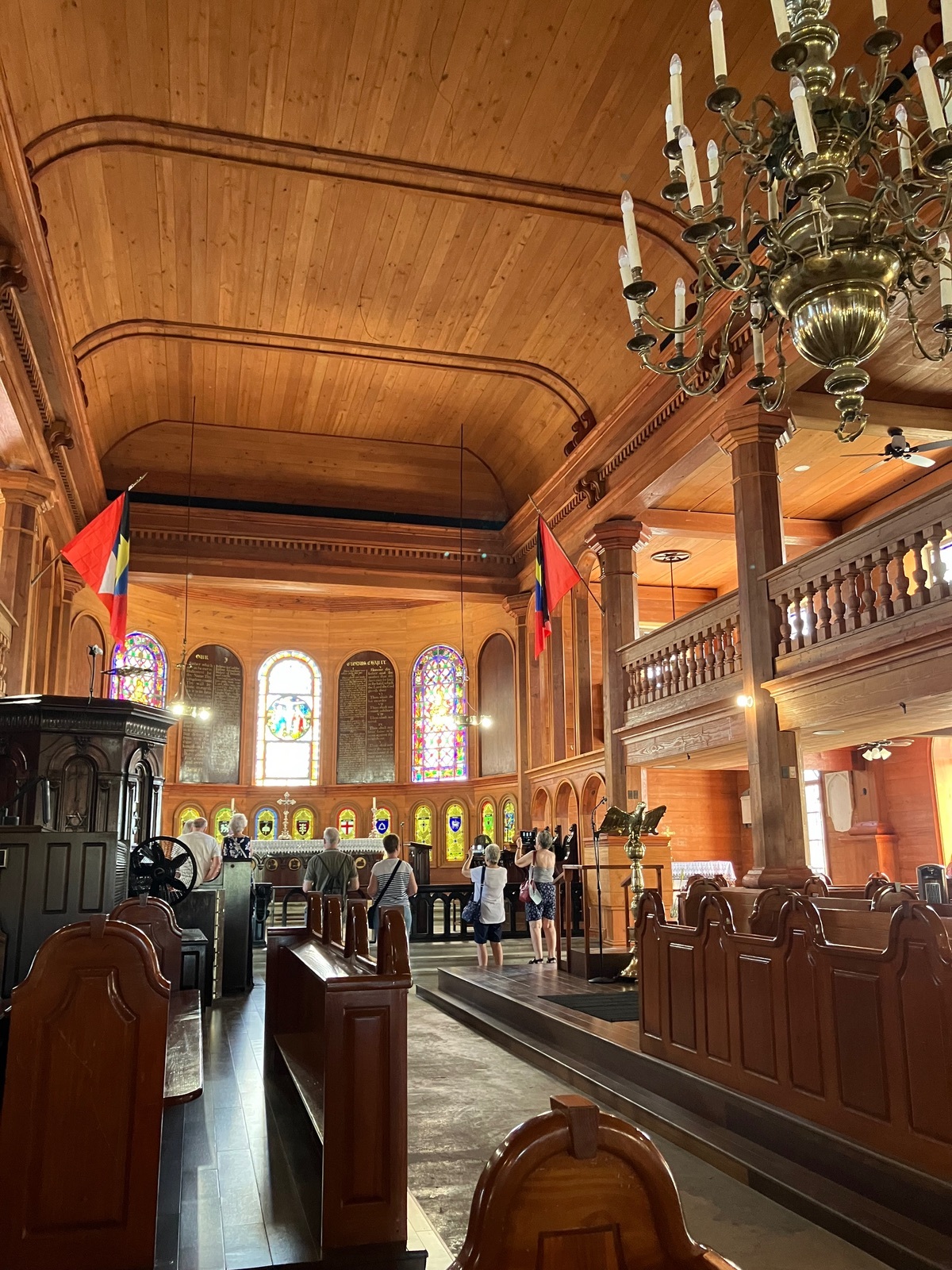 Heute Vormittag habe ich mir ja St. John‘s angeschaut, und es hat mir sehr gefallen, mich einfach durch die Stadt treiben zu lassen und zu schauen. Für 5$ Eintritt habe ich mir die Cathedral Church of St. John The Divine (wie sie mit vollem Namen heißt) angeschaut inkl. dem uralten Friedhof auf dem Außengelände). Da die Kirche auf einem Hügel liegt, hat man von dort auch eine schöne Aussicht. Die Kirche ist von außen aus Stein und von innen aus Holz und nicht der Originalbau, da dieser bei einem Erdbeben zerstört wurde.