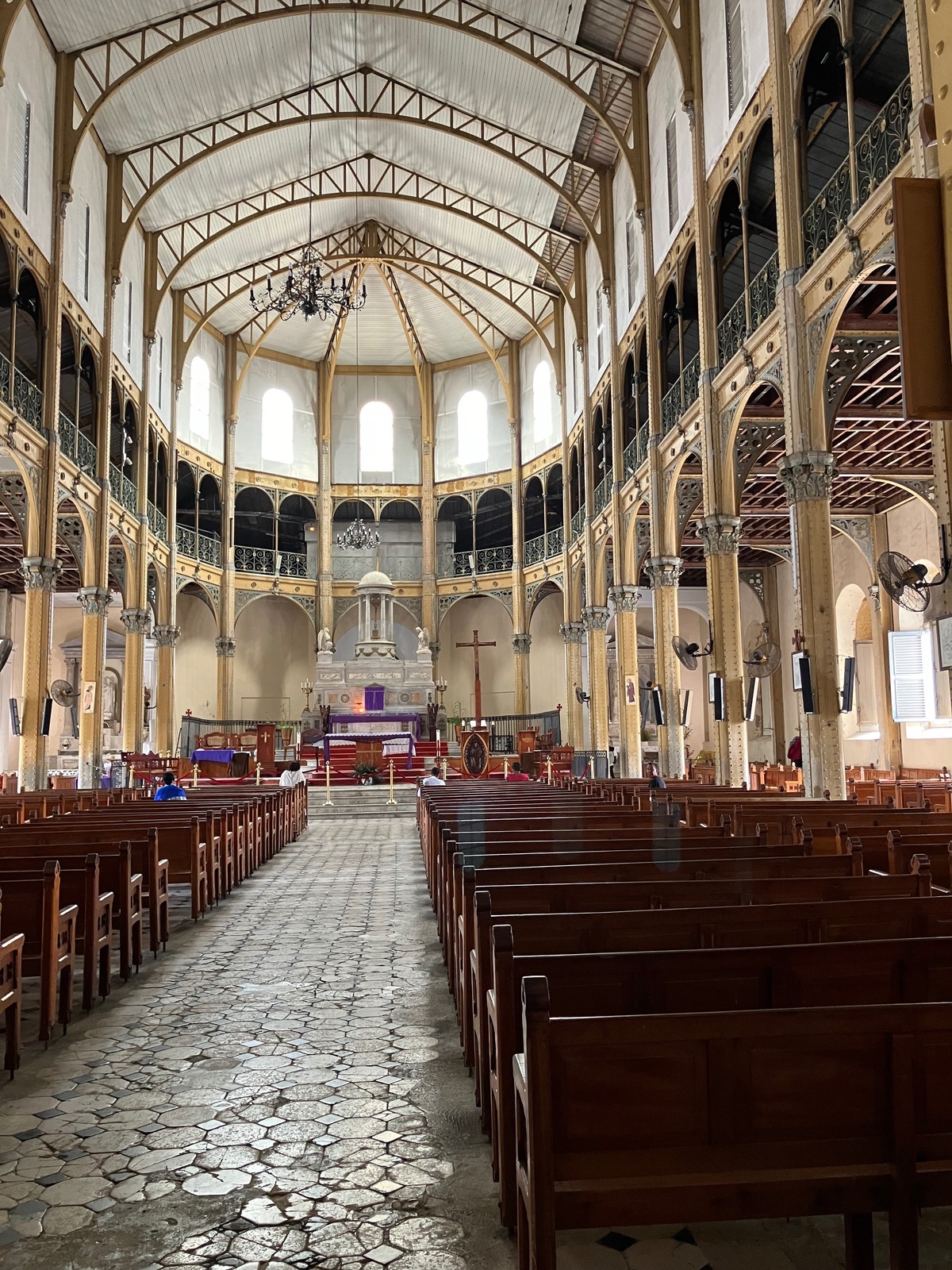 Der Spaziergang war auch wirklich interessant, denn wir sind in viele Gebäude auch reingegangen und haben die typische Architektur mehrfach angeschaut. Hier sind die Gebäude sehr auf Durchzug gebaut worden, als es noch keine Klimaanlagen gab: hohe Fenster und Türen, die einander gegenüber liegen.