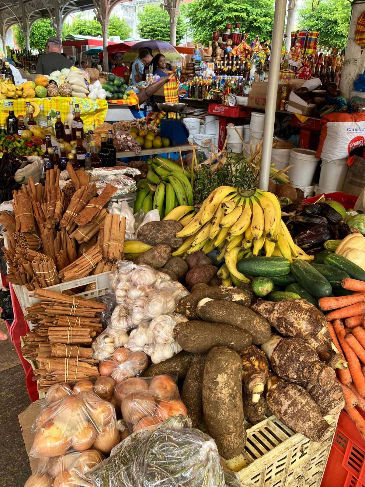 Das Highlight war aber der Obst- und Gewürzmarkt. Schon alleine die Gerüche sind einen Besuch wert. 😃 Hier endete die Führung auch, es sei denn, man wollte von der Führerin vom Schiff zurückgebracht werden. Darauf haben aber alle aus der Gruppe verzichtet, und wir sind noch alle zusammen über den Markt gegangen und haben auch das eine oder andere gekauft. Ich habe ein Sortiment aus karibischen Gewürzen mit einer Vanillestange gekauft. Das war einigermaßen transportfähig verpackt. 😄