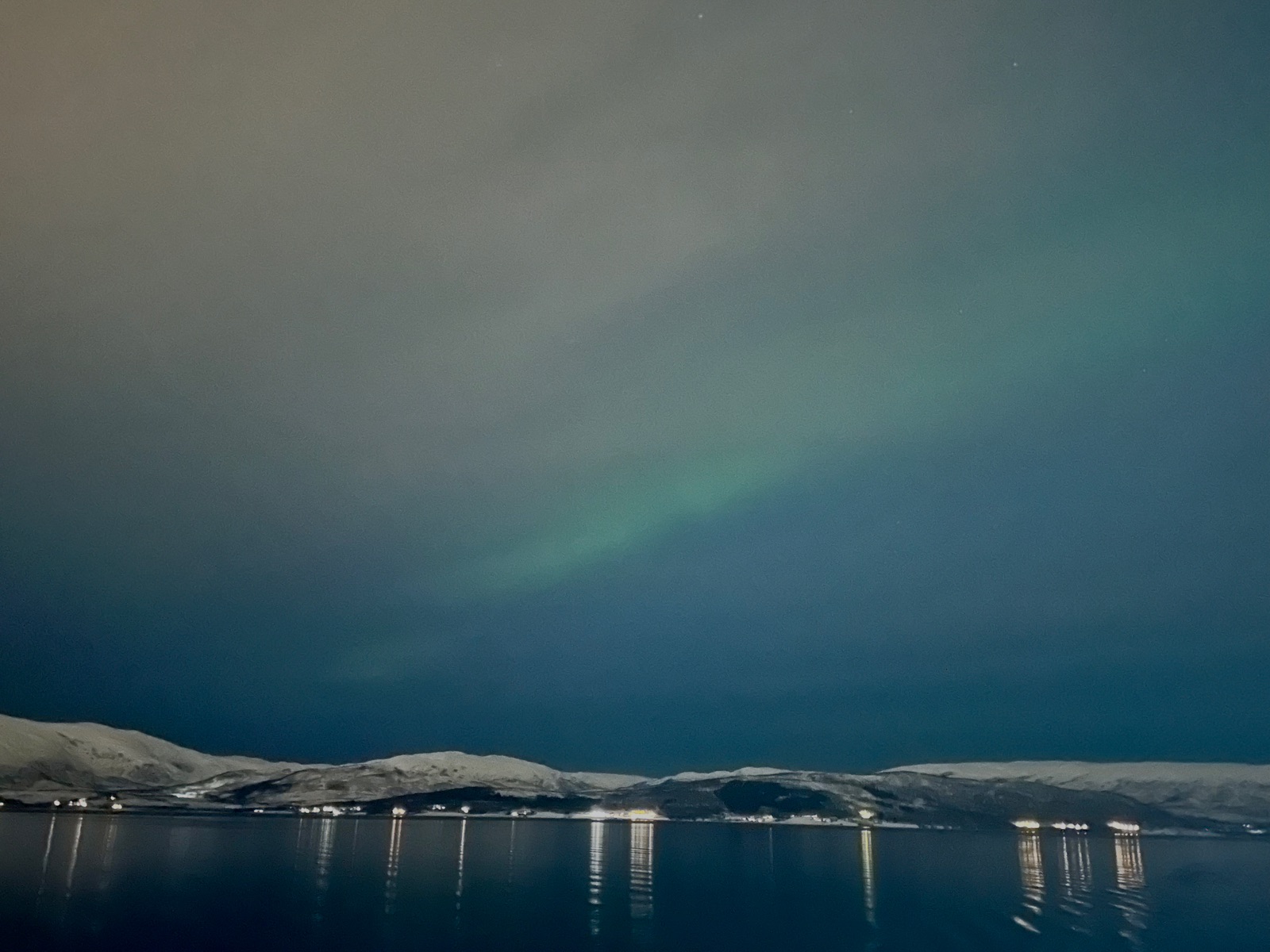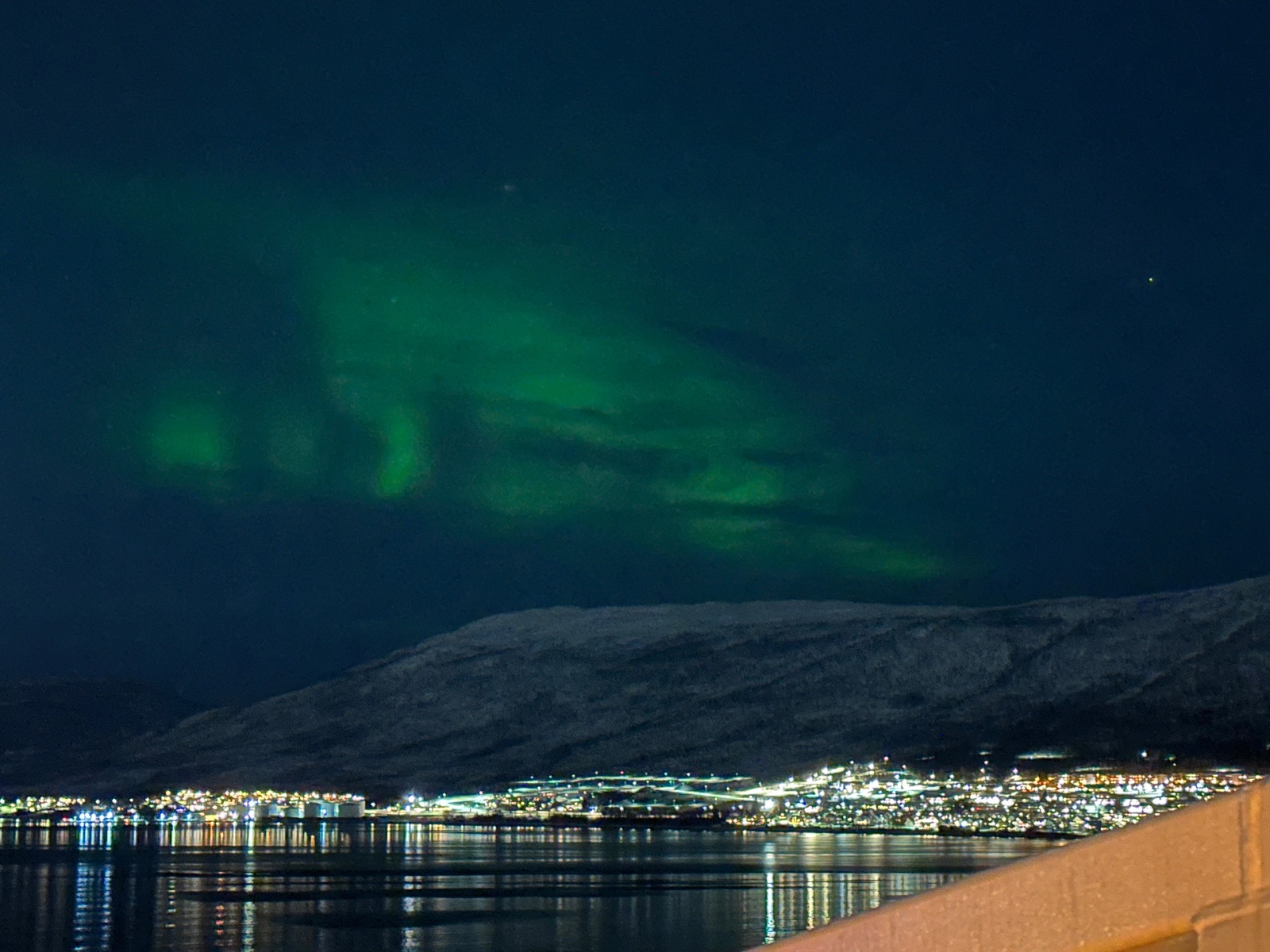 Obwohl an Deck zumindest einseitig ein übler Wind ging - das Panorama war mal wieder sehenswert, auch wenn das Norwegische Licht schon früh aus ist 🌚.