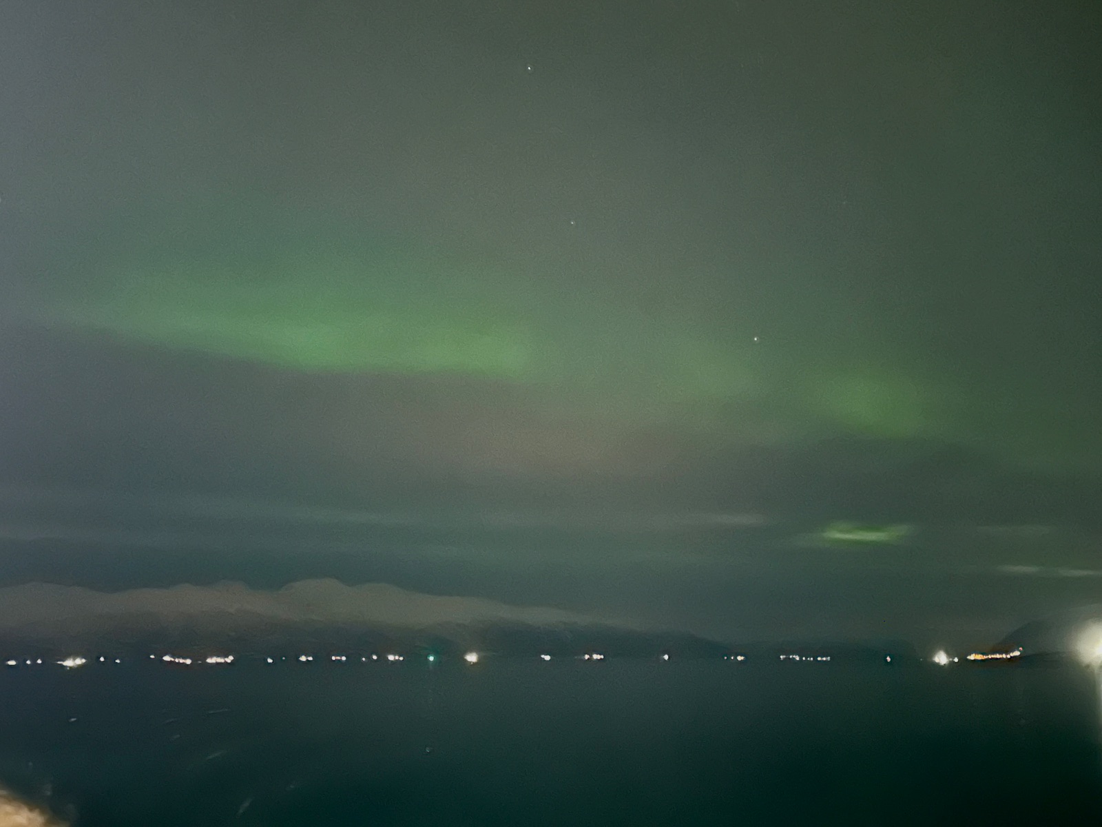 Obwohl an Deck zumindest einseitig ein übler Wind ging - das Panorama war mal wieder sehenswert, auch wenn das Norwegische Licht schon früh aus ist 🌚.