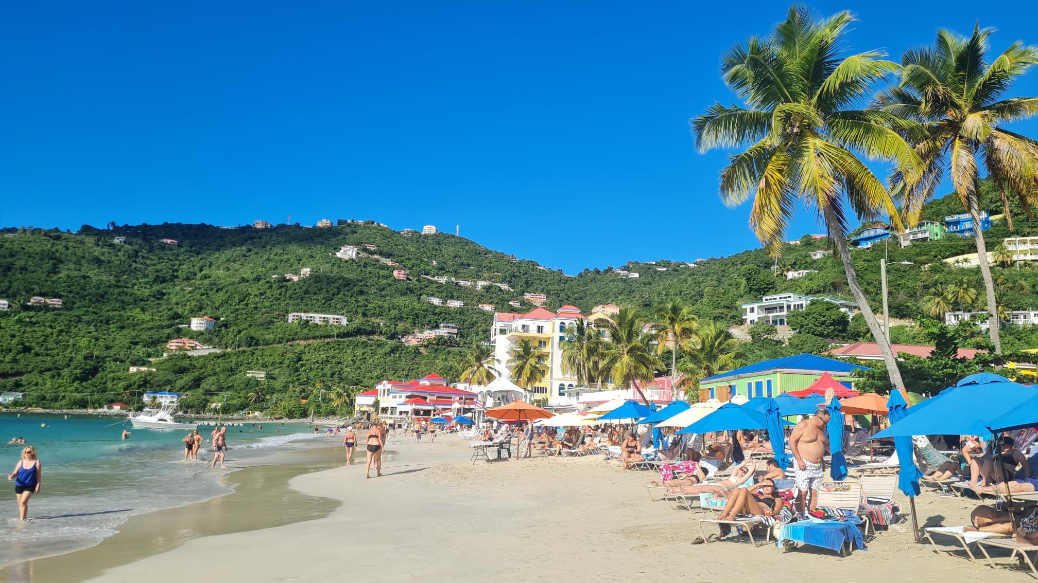 nitope In Tortola der Strand Cane Garden. Da stehen direkt am Hafen private Anbieter mit ihren offenen Bussen. St Maarten kommt heute erst, dort ist der Strand zu Fuß ca 1 km entfernt. Oder kostenpflichtig per Wassertaxi.