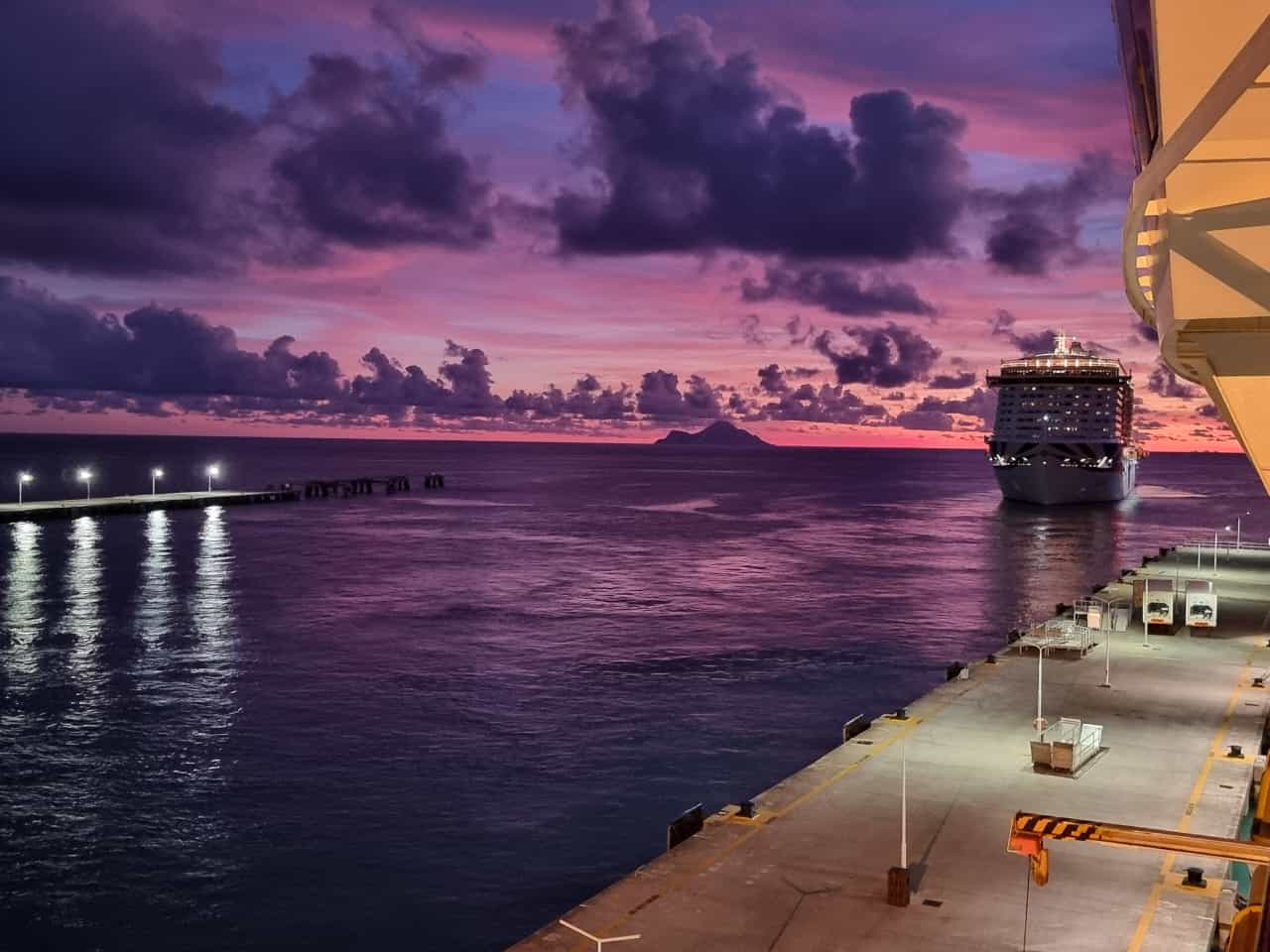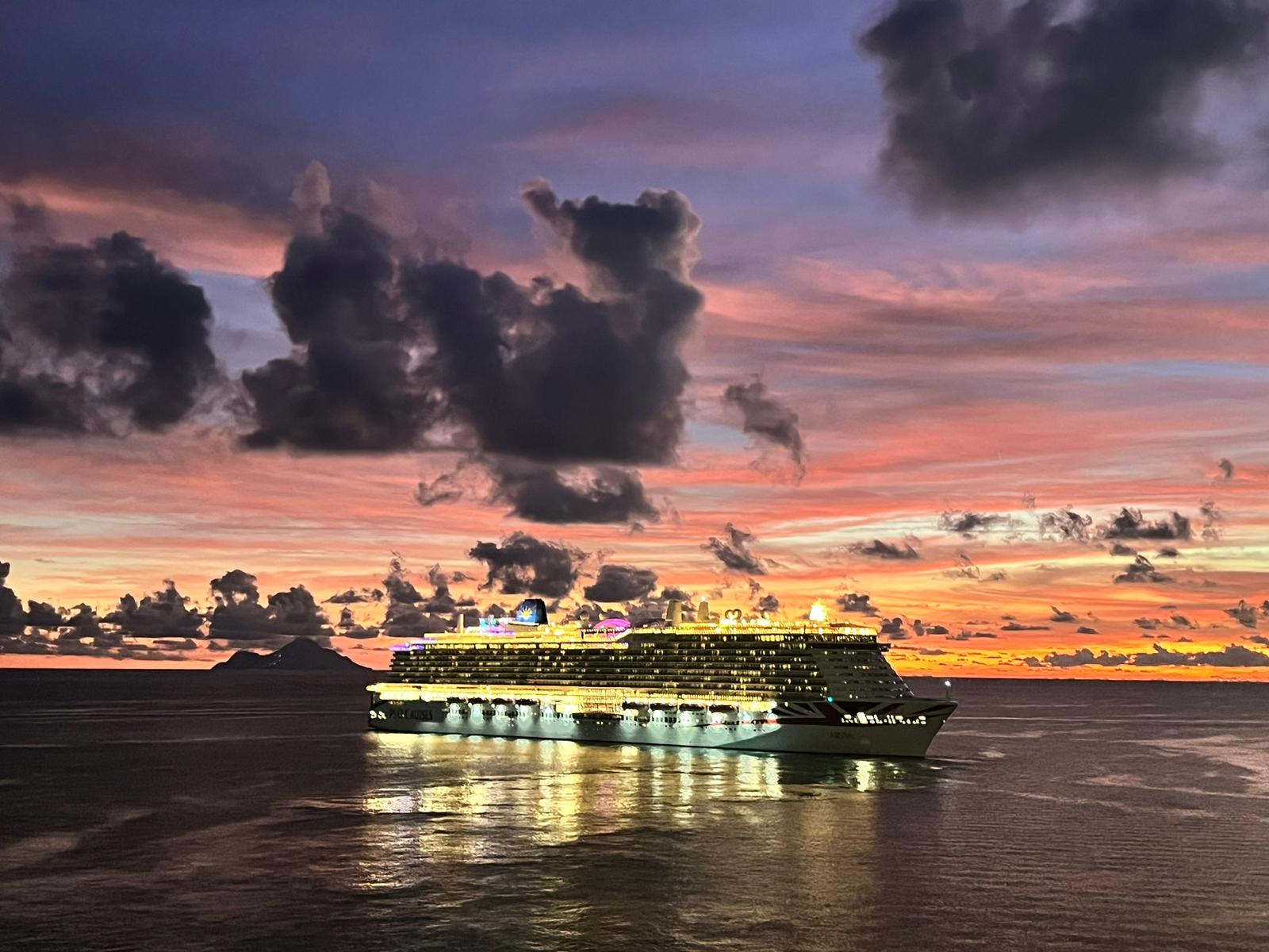 Die Arvia von P&O fährt vor uns aus dem Hafen von St Maarten