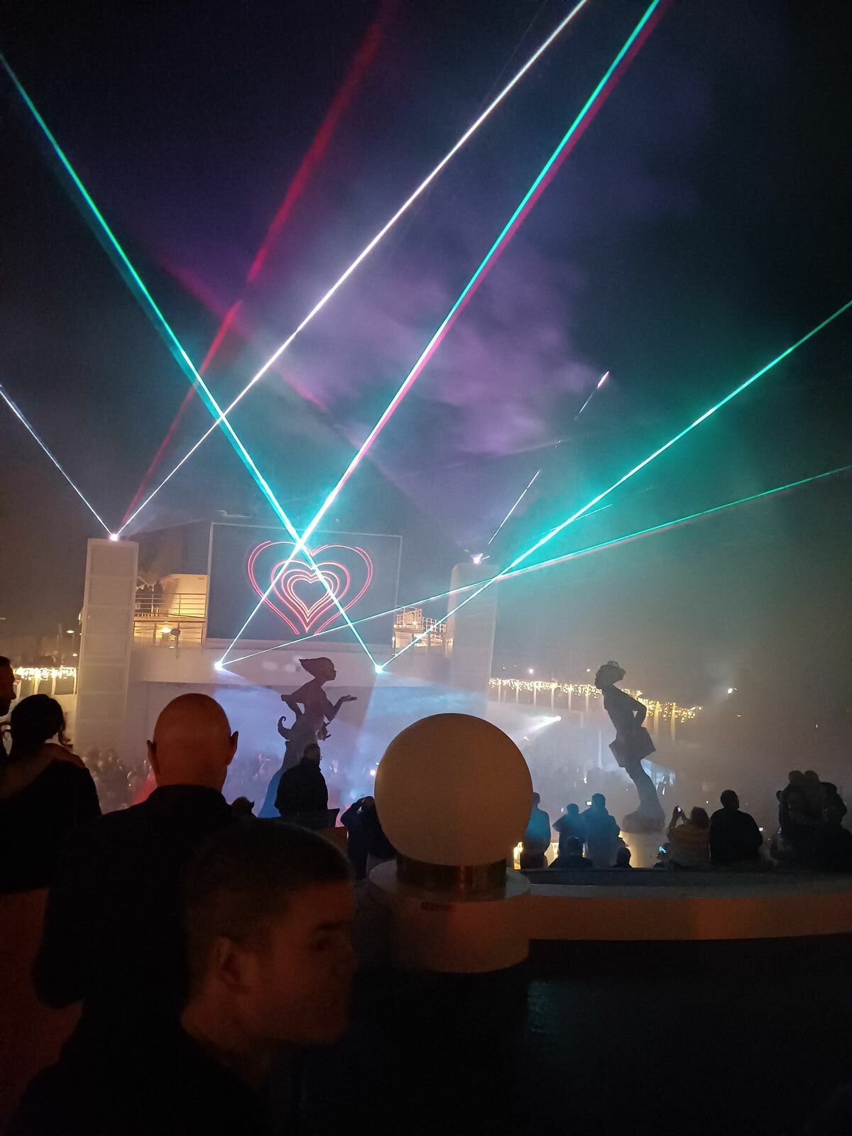 Lasershow um 00.10 Uhr,Pooldeck voll und noch ein Mitternachtsbuffet im Belladonna von 00.15 - 01.00 Uhr. Aidaheute um 1.30 Uhr noch nicht digital verfügbar