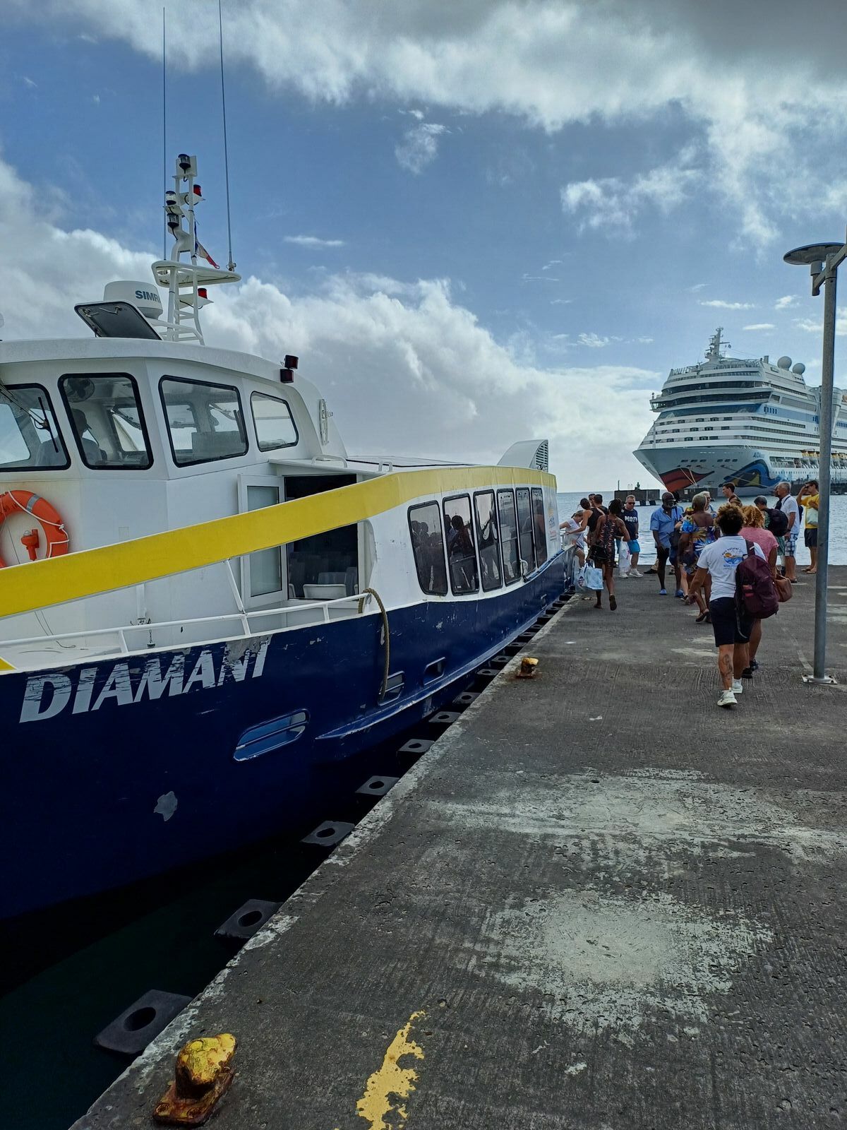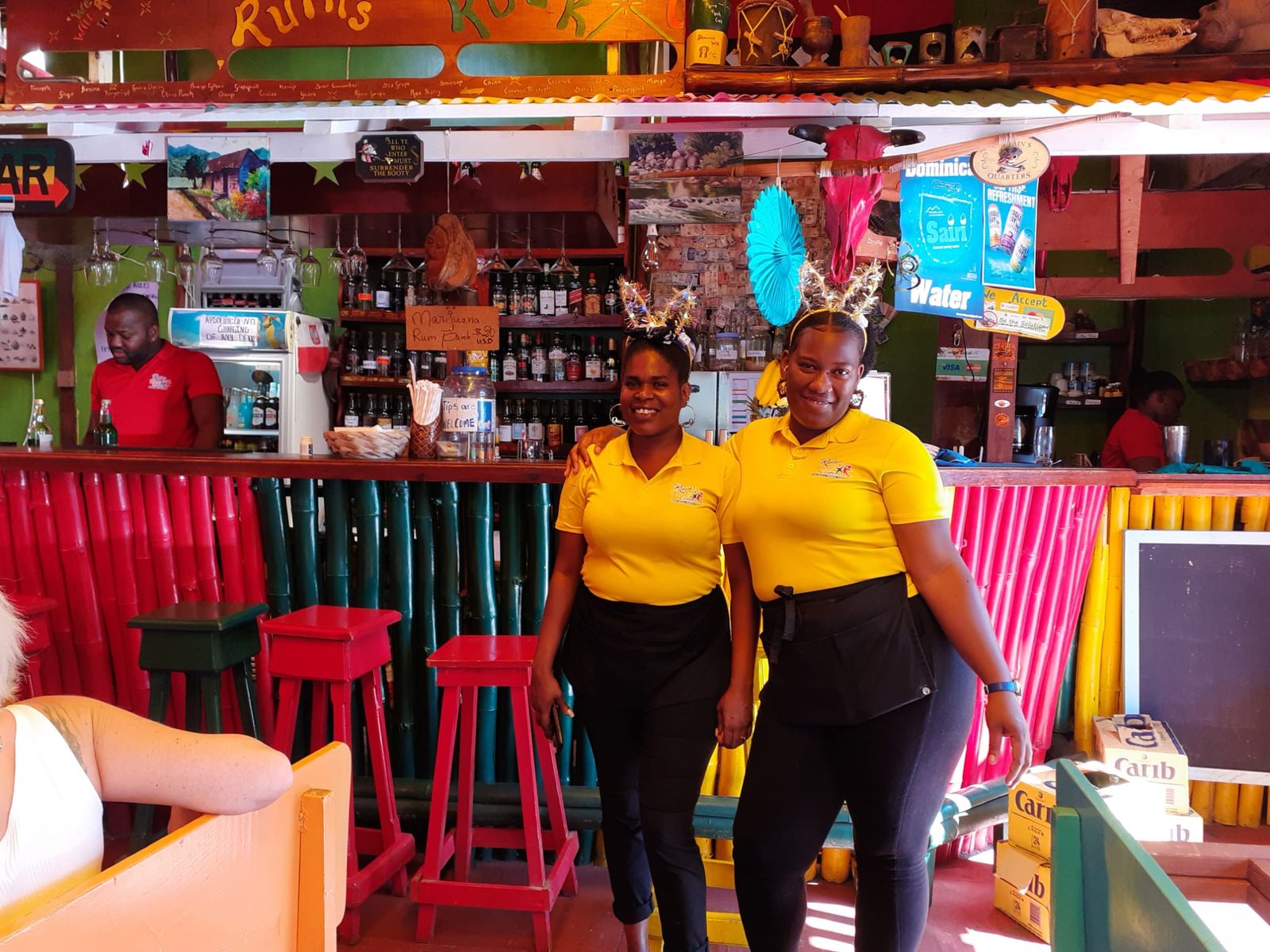 Ankunft in Dominica,der Bus im botanischen Garten, der während eines Hurrikans vom Baum erschlagen wurde.Wir sind mit einem privaten Taxi über die Insel und anschließend im Hafen auf ein Bier eingekehrt.
