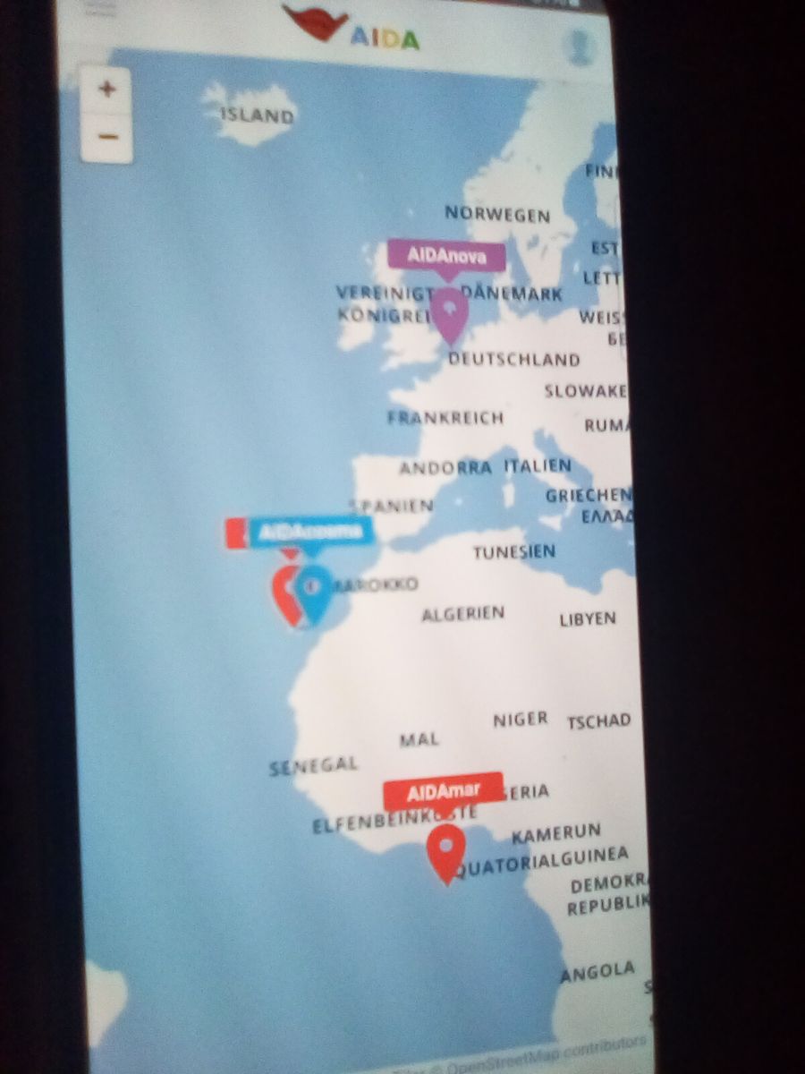 Habt ihr euch verfahren? Der Standort von AIDAmar in der AIDAapp sieht seltsam aus.