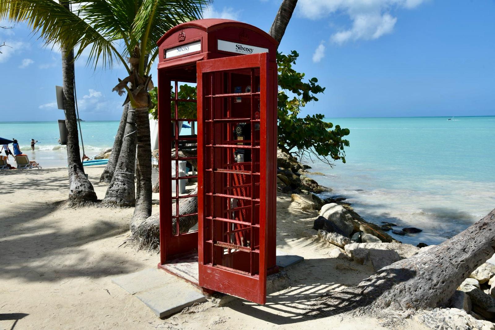 Mein Tipp: nehmt ein Taxi zum Dickenson Bay Beach. Dort steht die berühmte rote Telefonzelle. Taxi pro Person und Strecke 15 Dollar.