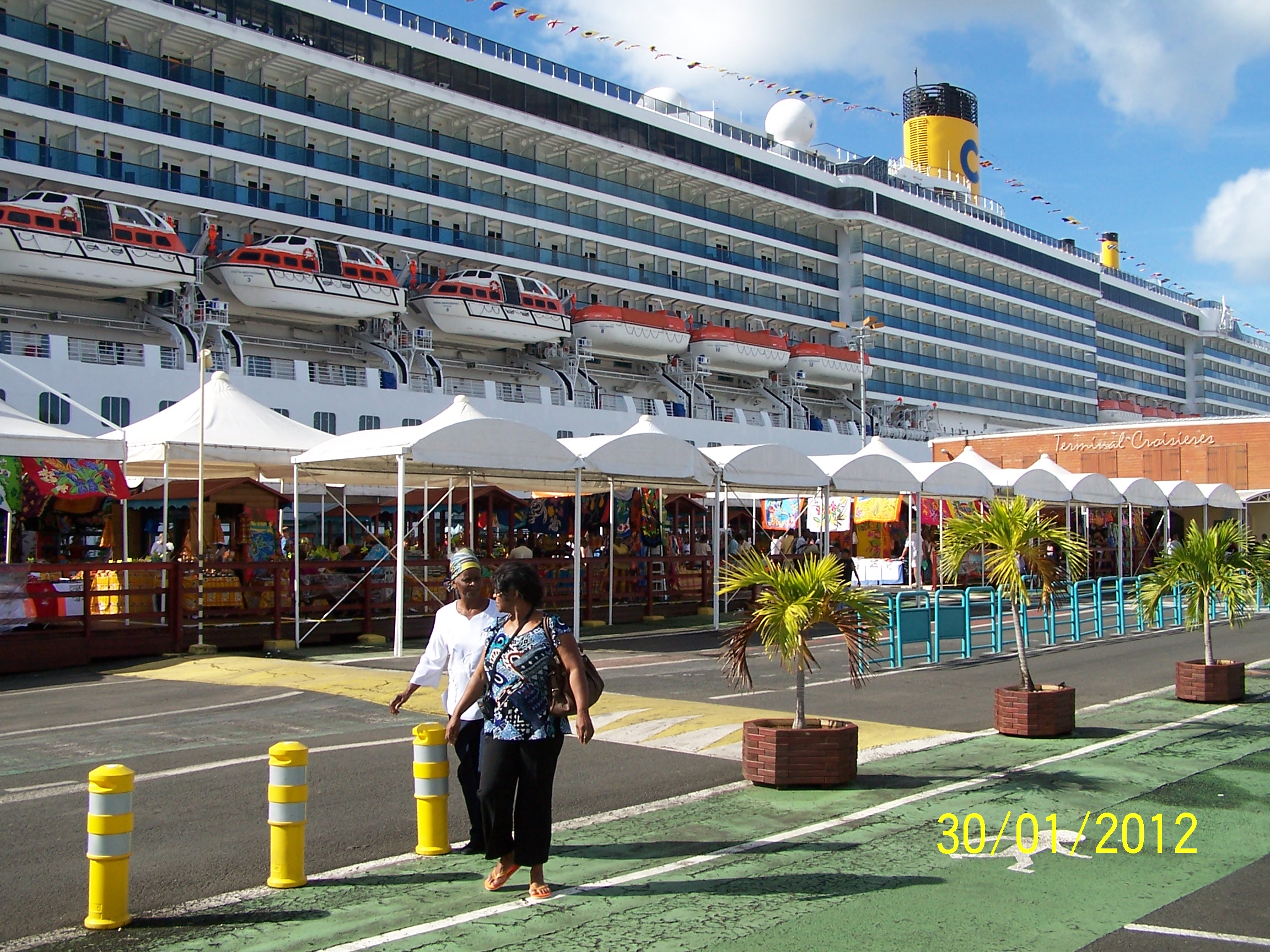 Wir sind von der Tour zurück und hier ein kurzer Bericht. Wir haben zu viert ein Taxi genommen für eine Tagestour, 45 $ pro Person, und haben La Grande Terre erkundet. Von Vorteil war eine des Französischen mächtige Mitfahrerin. Es ging an der Südküste entlang mit verschiedenen Aussichtspunkten über Sainte-Anne (Besuch des Gewürzmarktes - dieser Duft) bis zum Pointe des Châteaux. Hier hatten wir ausgiebig Zeit. Dann ging es die Küste hoch bis El Moule, wieder mit Rastpunkten. Quer über die Insel fuhren wir bis Moure-à-l'Eau zur Besichtigung des eindrucksvollen Friedhofes. Nun führen wir die Küste weiter hoch bis zum Plage de Souffleur, wo wir 2 Std. Badezeit hatten. Hier an dieser Küste mit Blick auf La Basse Terre gab es kein Seegras, sondern nur schönes Wasser. Pünktlich waren wir wieder am Schiff. Wir hatten eine gute Taxifahrerin und dank unserer Übersetzerin bekamen wir auch Infos.
