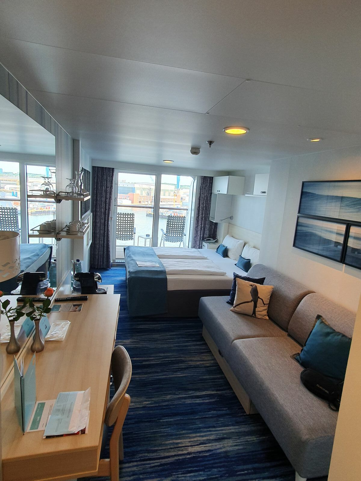 Die Kabine liegt Steuerbord in der Ausbuchtung direkt am Treppenhaus A und unter der Ruhepol-Bar.
