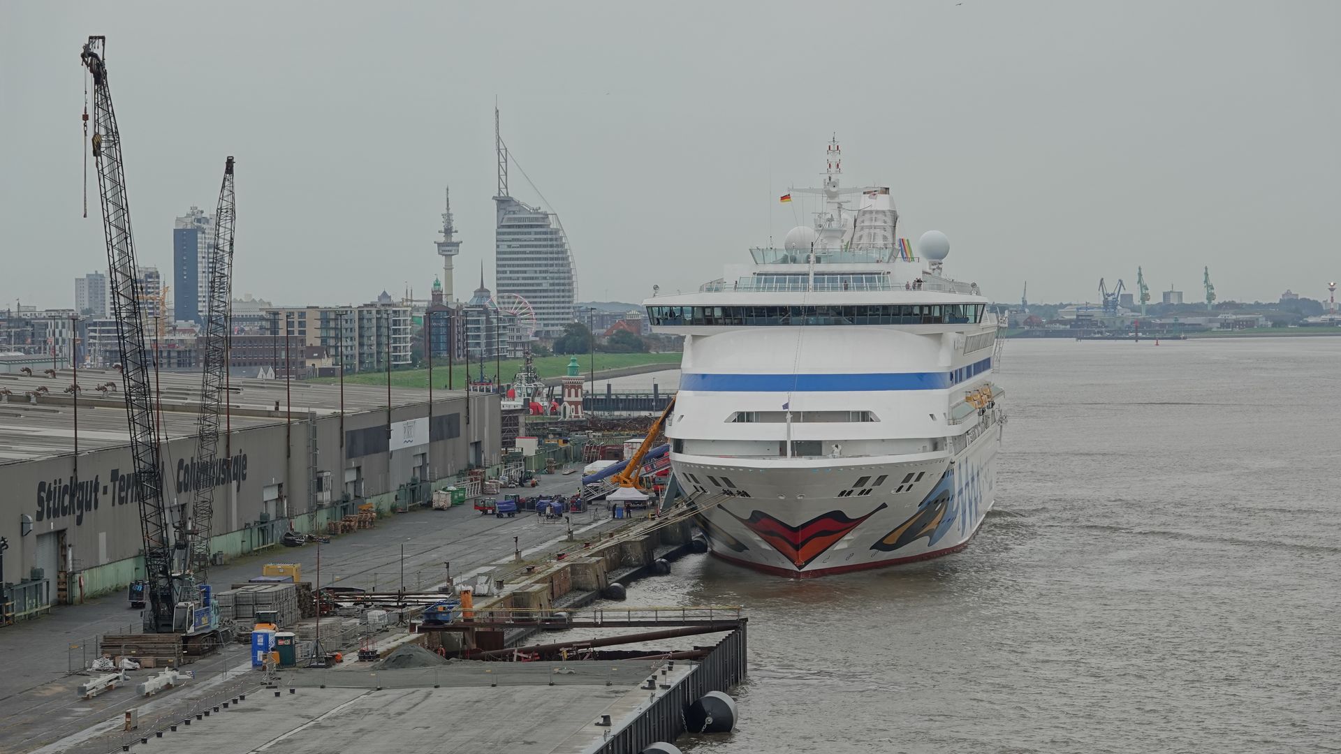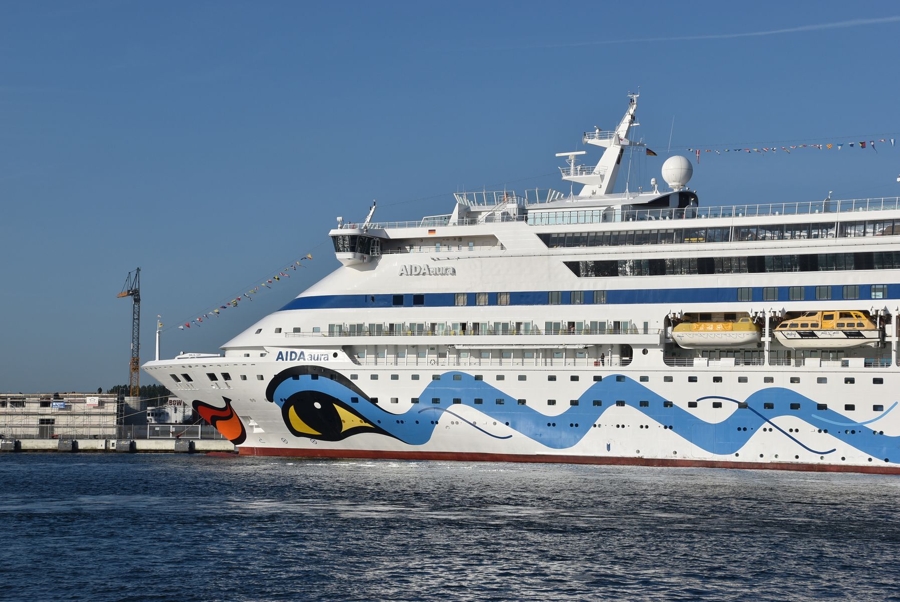 Nun ist der zweite Abschnitt der verbreiterten Columbuskaje fertiggestellt. Die Amadea und die Aura dürften direkt hintereinander liegen. Vom Balkon aus also gut zu sehen.
