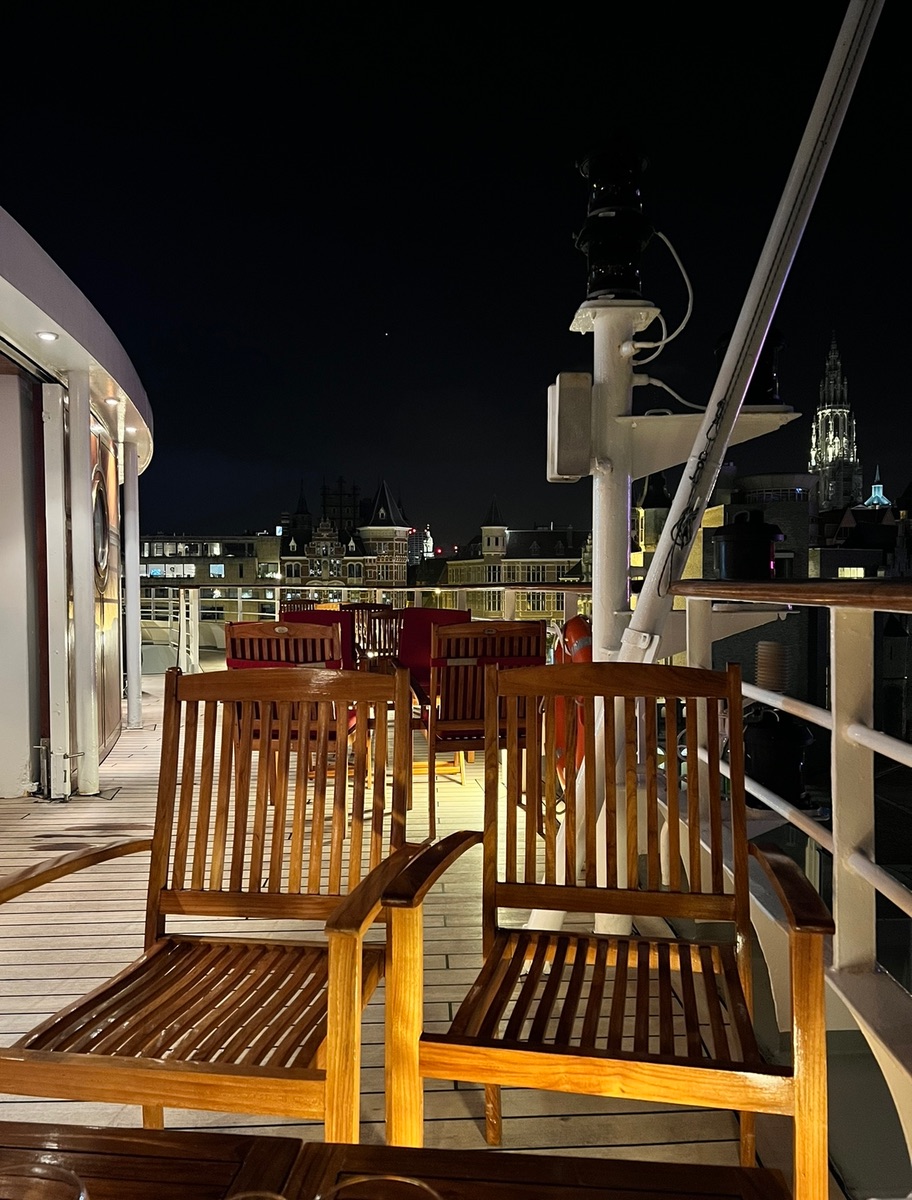 Das ist einfach mal nicht richtig. Wir haben am 02. Oktober 2022 mitten in der Stadt Antwerpen gelegen. Beweisfoto unten. Genau deshalb fahren wir ja so gerne mit dieser Schiffsklasse und wären sehr traurig, wenn die Aura die Flotte verlassen müsste.