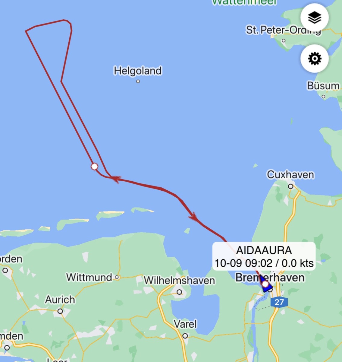 Es gibt Webseiten, wo Schiffe mit ihrem aktuellen Standort zu sehen sind. Ausserdem kann man die letzten Bewegungen einblenden , wie oben von der aura.