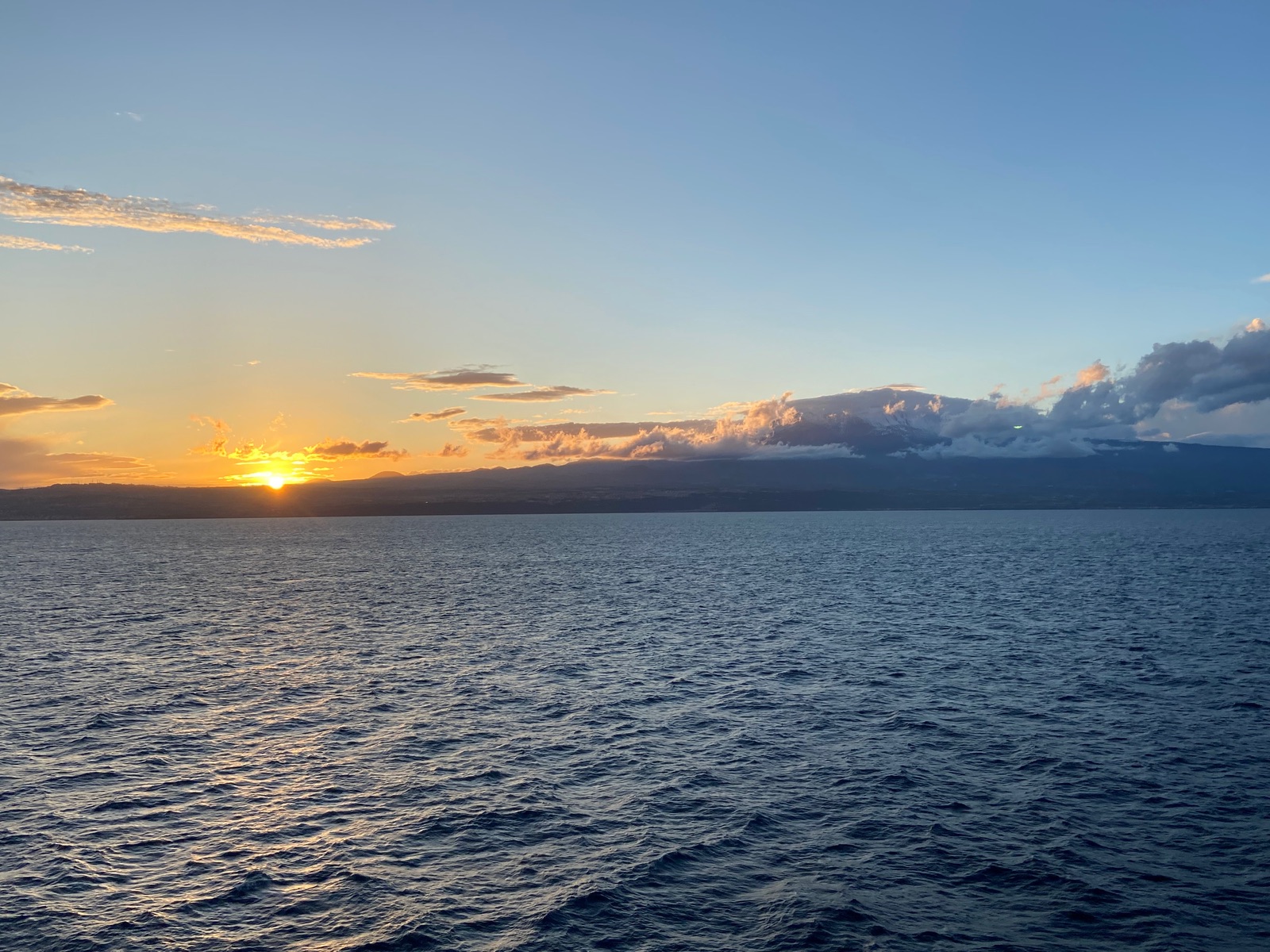 Sail away aus Catania mit Sonnenuntergang und Blick auf den verschneiten Ätna 👍