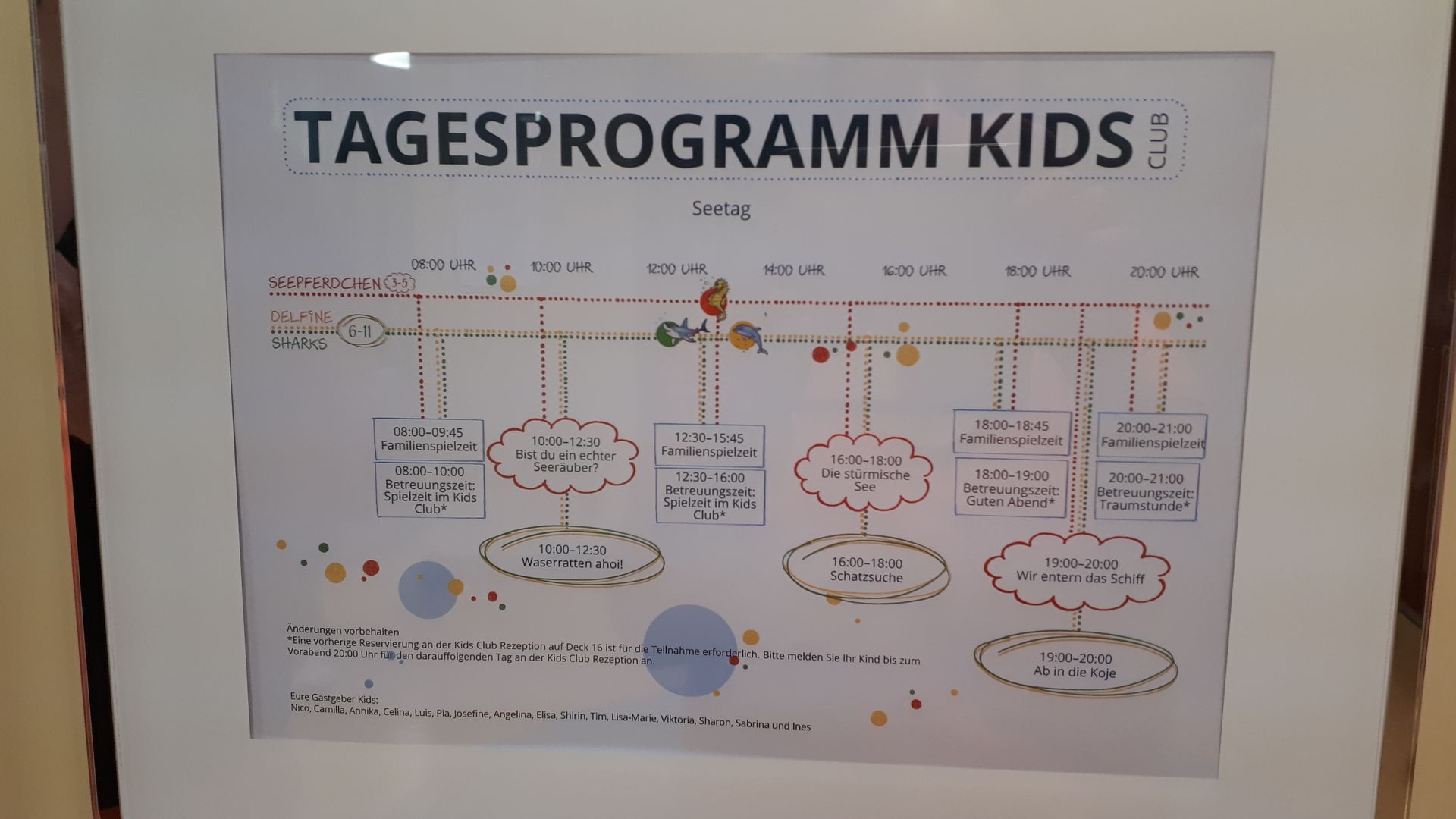 Wir sind auch am Samstag von der Cosma abgestiegen. Der Ablauf im Kids Club war so, wie wir ihn vor Corona auf der Nova und auf der Sol erlebt haben. Die Aufteilung in offene Programmzeiten und Betreuungszeiten mit vorheriger Anmeldung ist normal.